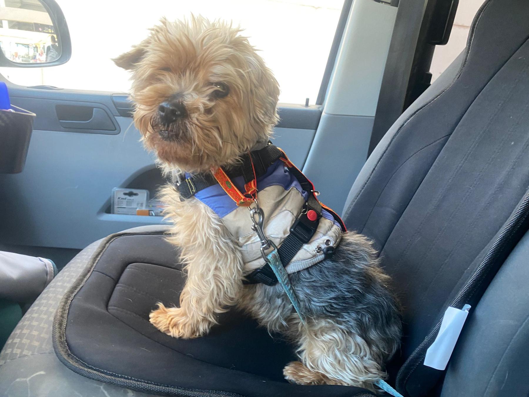 Hij krijgt van ons ook een tuigje en halsband.
