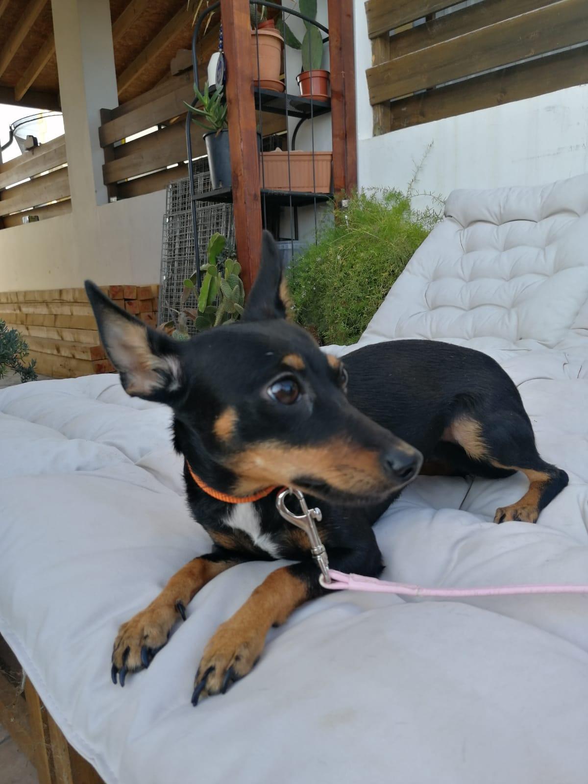 Peggy is het zusje van Mimis, ook een mini pincher teefje van 1 jaar oud, rond de 3 à 4 kilo. Net als haar broer komt ze naar Nederland gesteriliseerd, volledig gevaccineerd, gechipt en met een Europees paspoort.