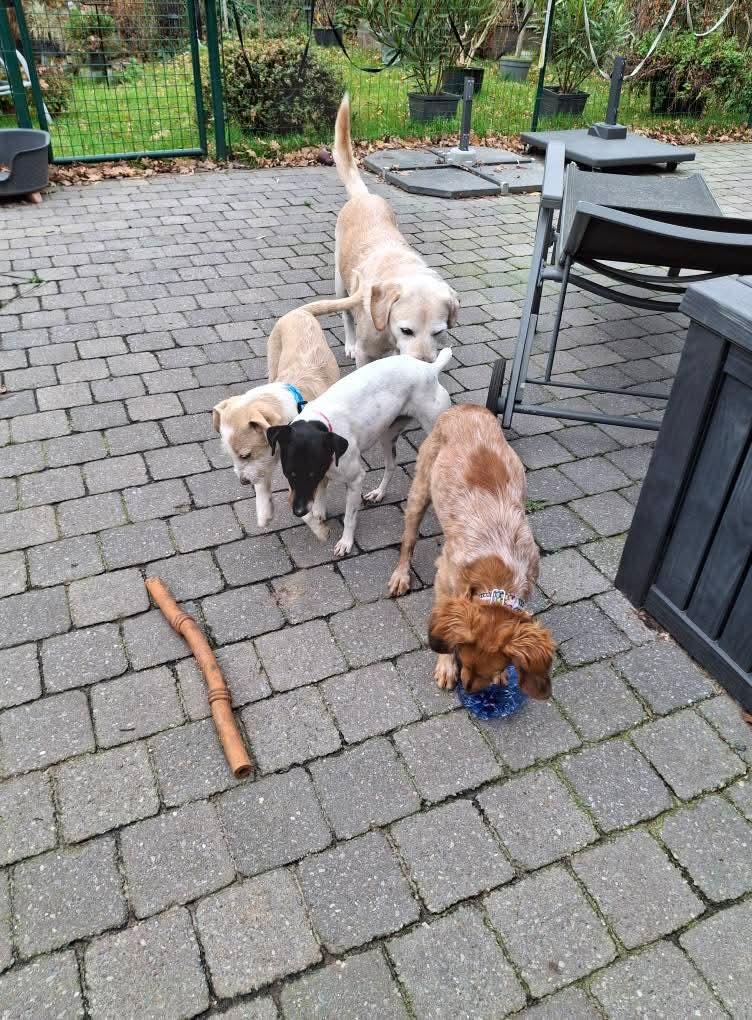 Zij is goed met alle honden. Met katten kunnen we testen.