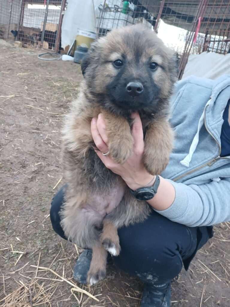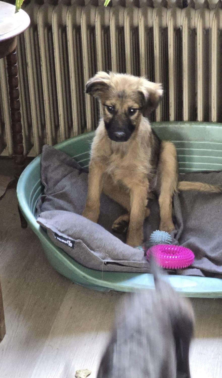 Kleine Poli werd met nog twee pupjes en hun moeder Octavia op straat gegooid in Bosnië.