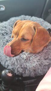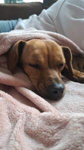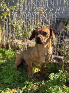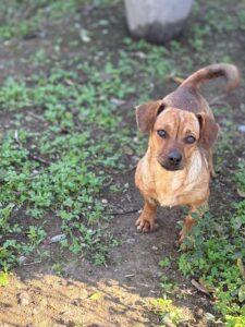Dit vrolijke dametje is Puck, een klein teckelmix-meisje met een groot hart. Puck zwierf ooit rond op de straten van Roemenië, onopgemerkt door iedereen… tot ze gelukkig werd opgemerkt door onze rescuepartner en een plekje kreeg in de opvang.
