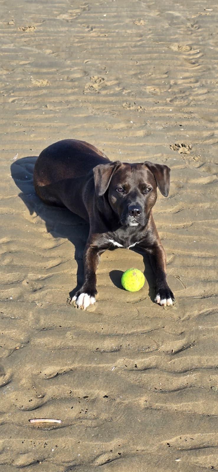 Maak kennis met REZZ, een vijfjarige gecastreerde reu boordevol energie en levenslust. Deze vrolijke hond is altijd klaar voor actie: rennen, spelen, wandelen… stilzitten is eigenlijk niets voor hem 😉
