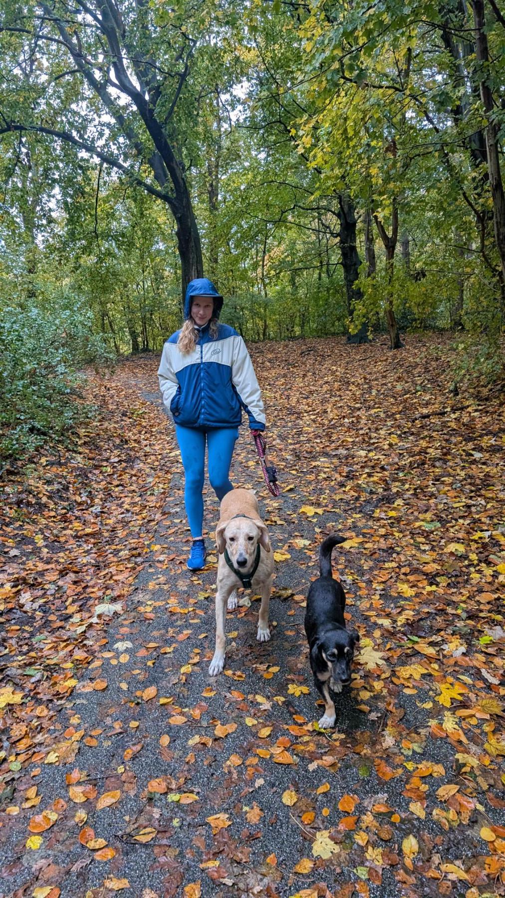 She’s wonderful on walks, happily trotting beside you and even able to walk off-leash. Robyn can be a little nervous around other dogs, cars, and loud noises, but she’s opening up more each day and learning that the world isn’t so scary after all. Having another confident dog around really helps her blossom and brings out her playful side.