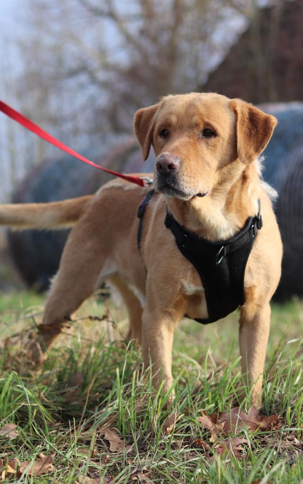 Dit is Roki, een prachtige Labrador-mix van 6,5 jaar oud (geboren januari 2019). Met zijn 50 cm schofthoogte en 25 kilo is hij een mooie middelmaat.