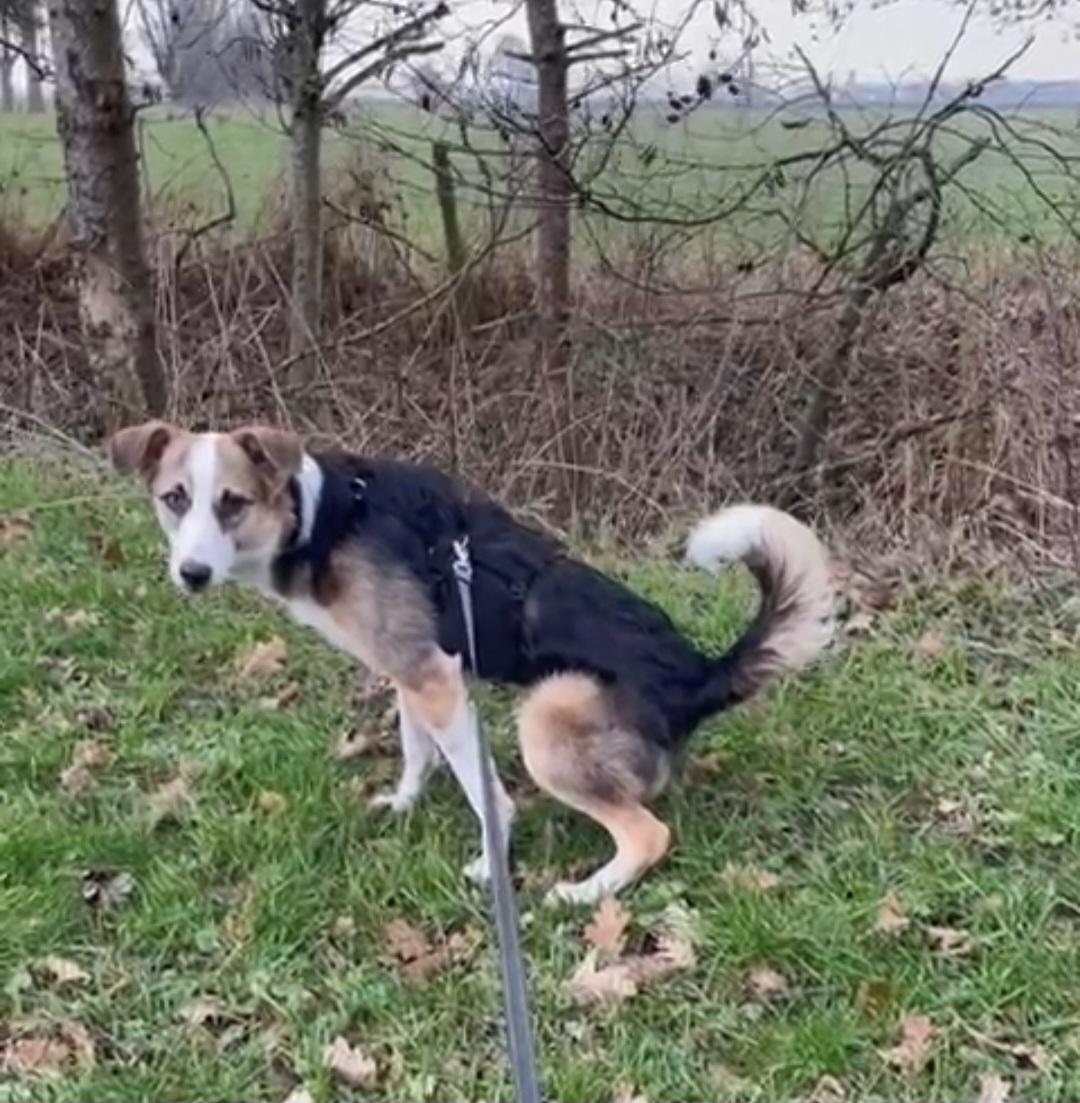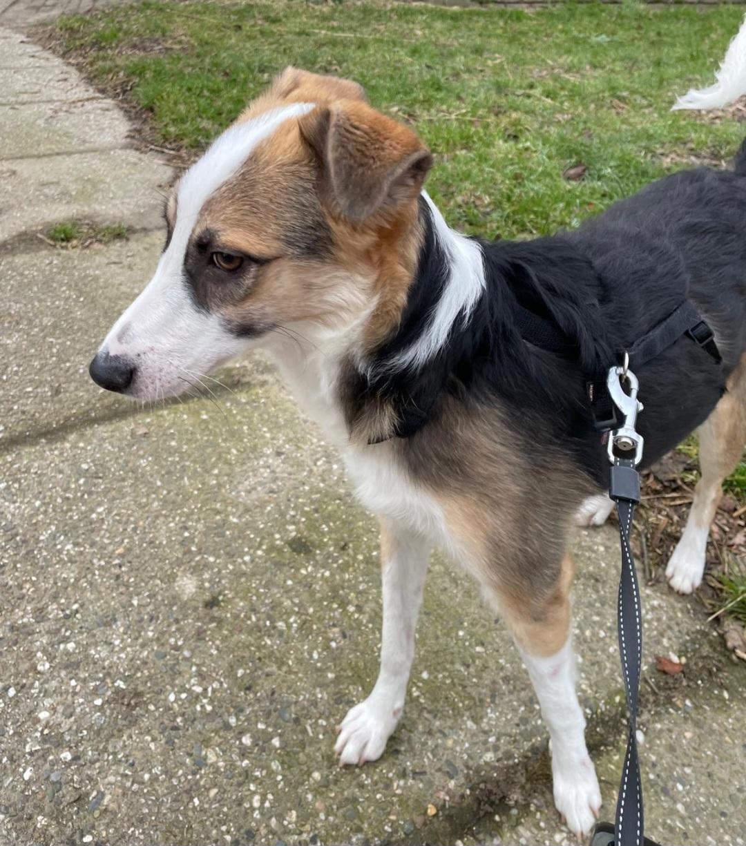 Romy zit tijdelijk in een opvang gezin met kinderen en een tuin, en meerdere hondjes. Daaraan merken we dat zij een hondenvriendje nodig heeft.