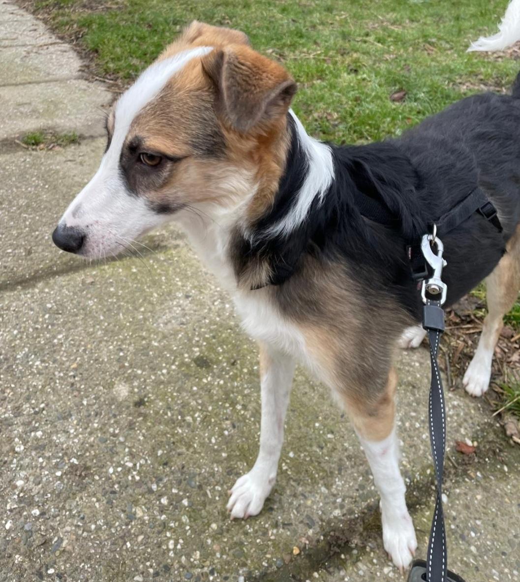 Romy is een rustige, zachtaardige jonge hond. Ze zit momenteel in een gastgezin met kinderen, dat gaat heel goed. Romy heeft een hondenvriendje nodig daarom kwam zij terug van adoptie. Ze is lief voor mensen, kinderen en andere honden. Het is een slanke hond, hoog op de pootjes, makkelijke vacht.