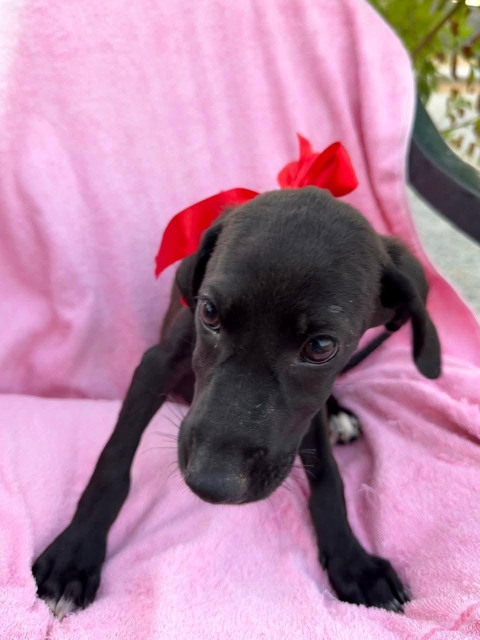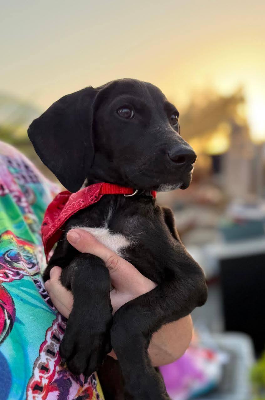 Zij overleefde, gevonden in een koffer op een vuilstort, en dat maakt haar hongerig naar liefde. Dit schattige, energieke dametje is nu 5 maanden jong, zeer aanhankelijk en speels. Ze zal middelgroot worden en haar oren hintten op jachthond-genen. De ouders zijn onbekend, maar haar aard is alleszeggend.