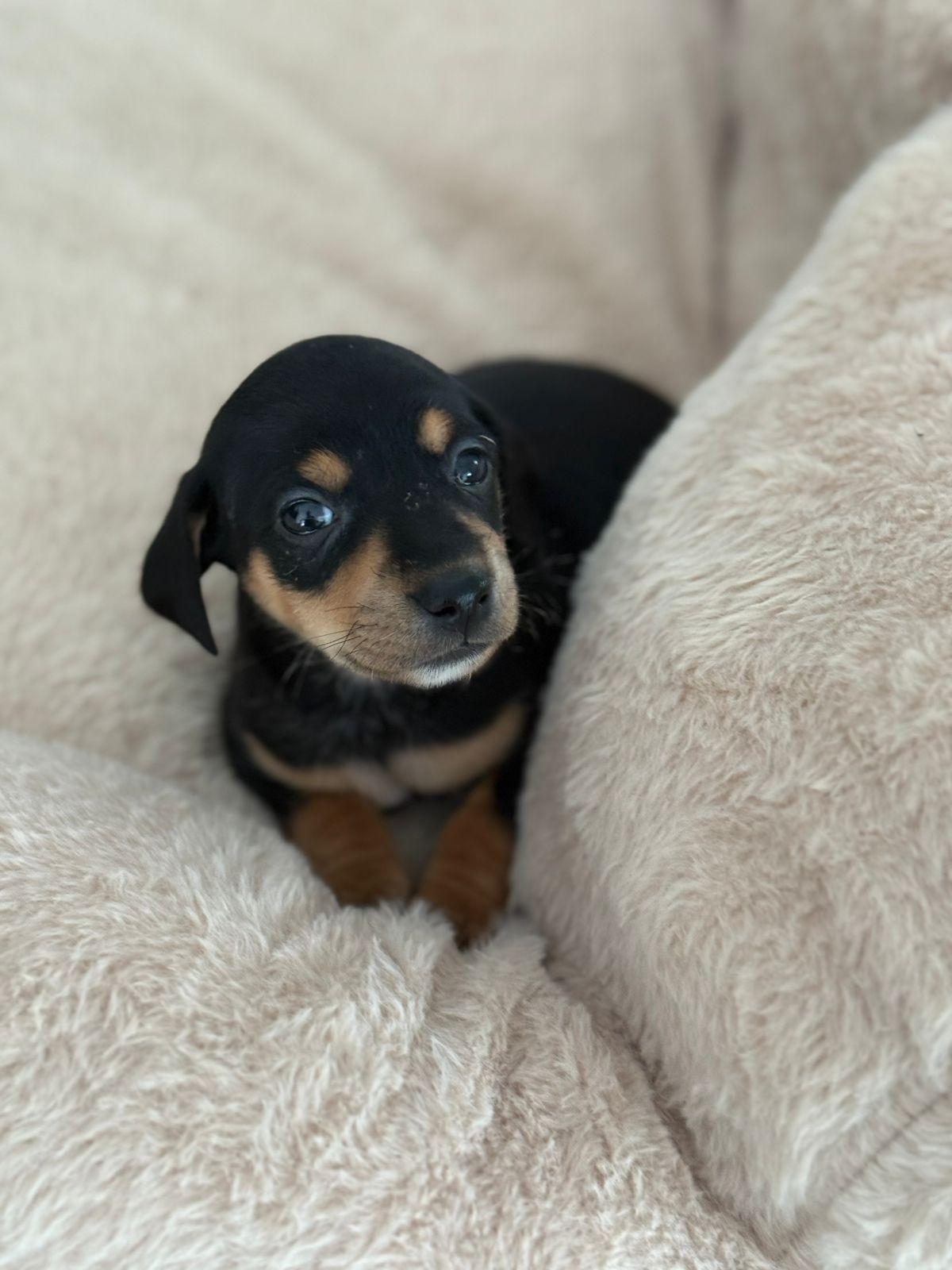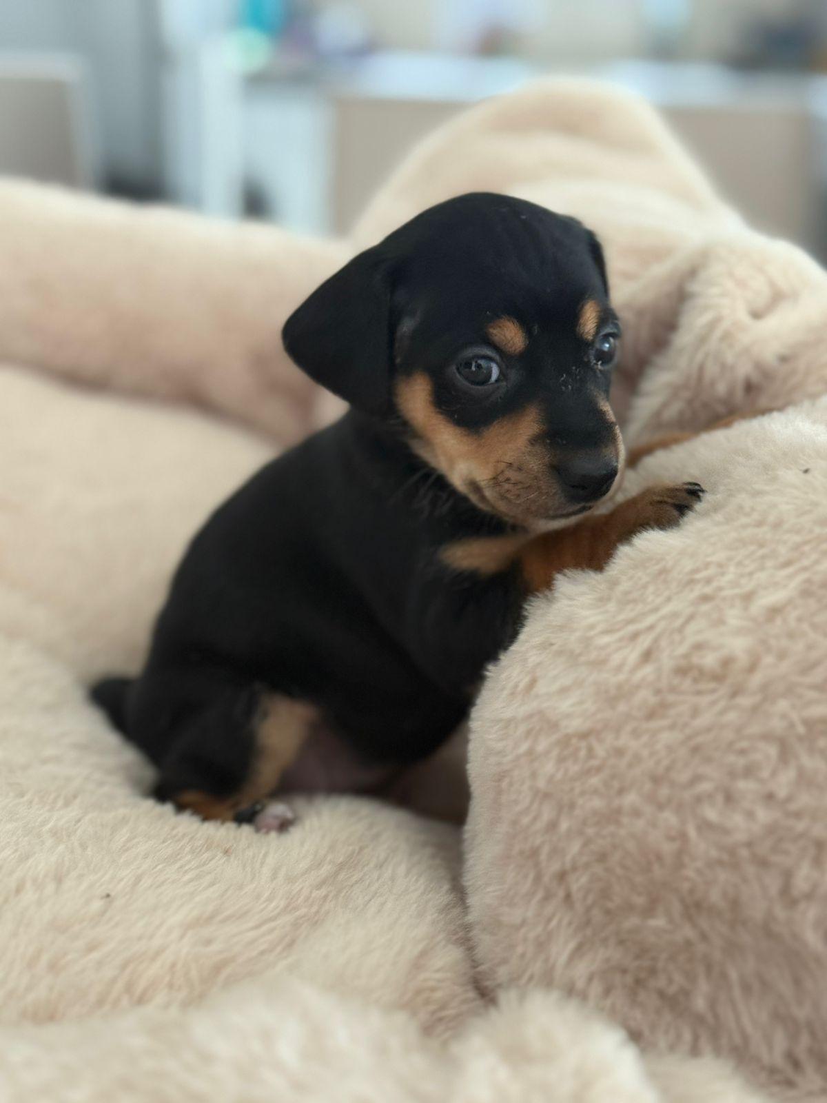 Op 28 november werd in het asiel een lief nestje puppy’s geboren. Hun mama, een klein hondje met korte pootjes, heeft haar pups een warme en zorgzame start gegeven. Eén van deze schatjes is Saga: een teefje van inmiddels één maand oud, met een lieve uitstraling en een speels, zachtaardig karakter.