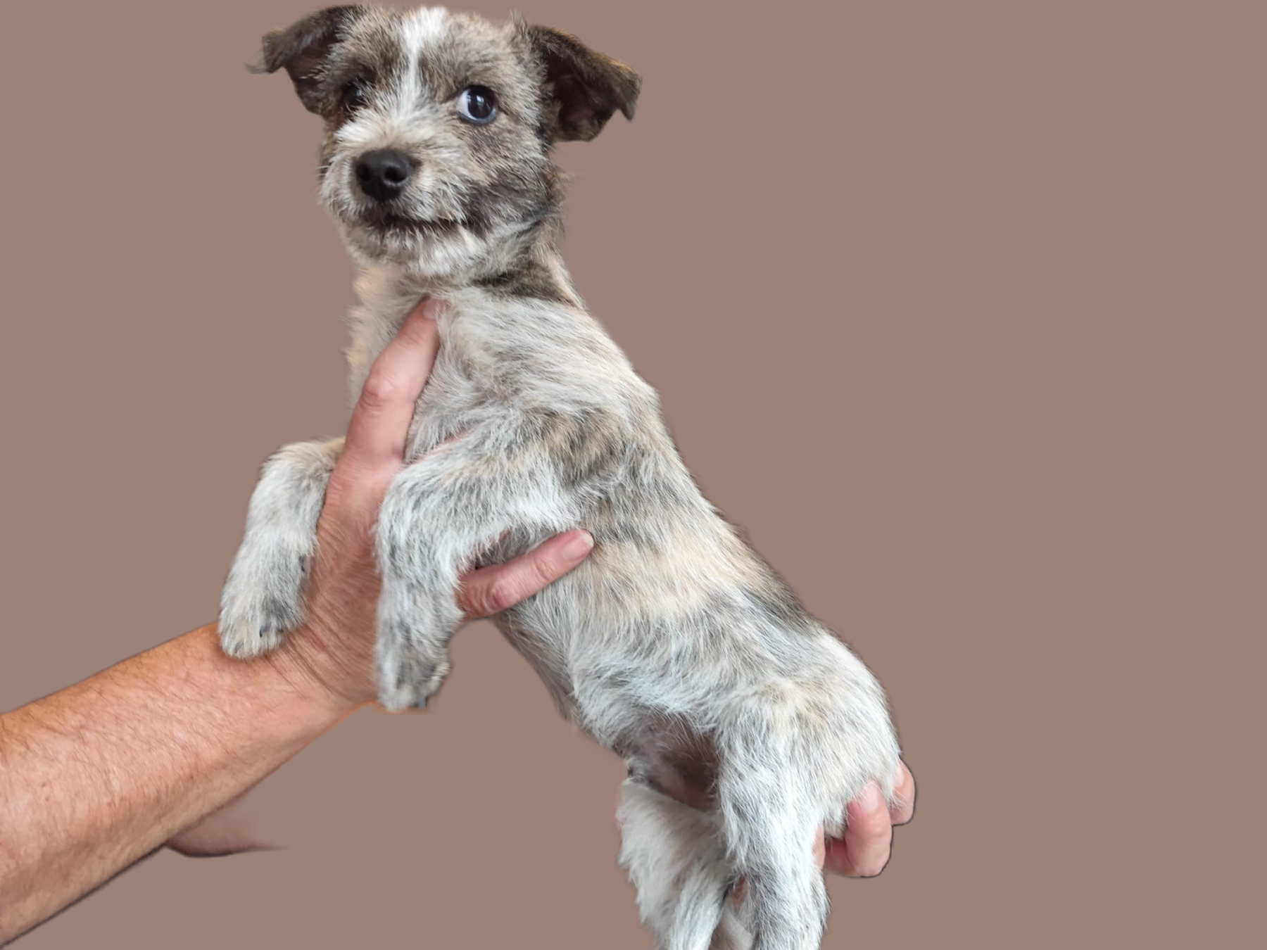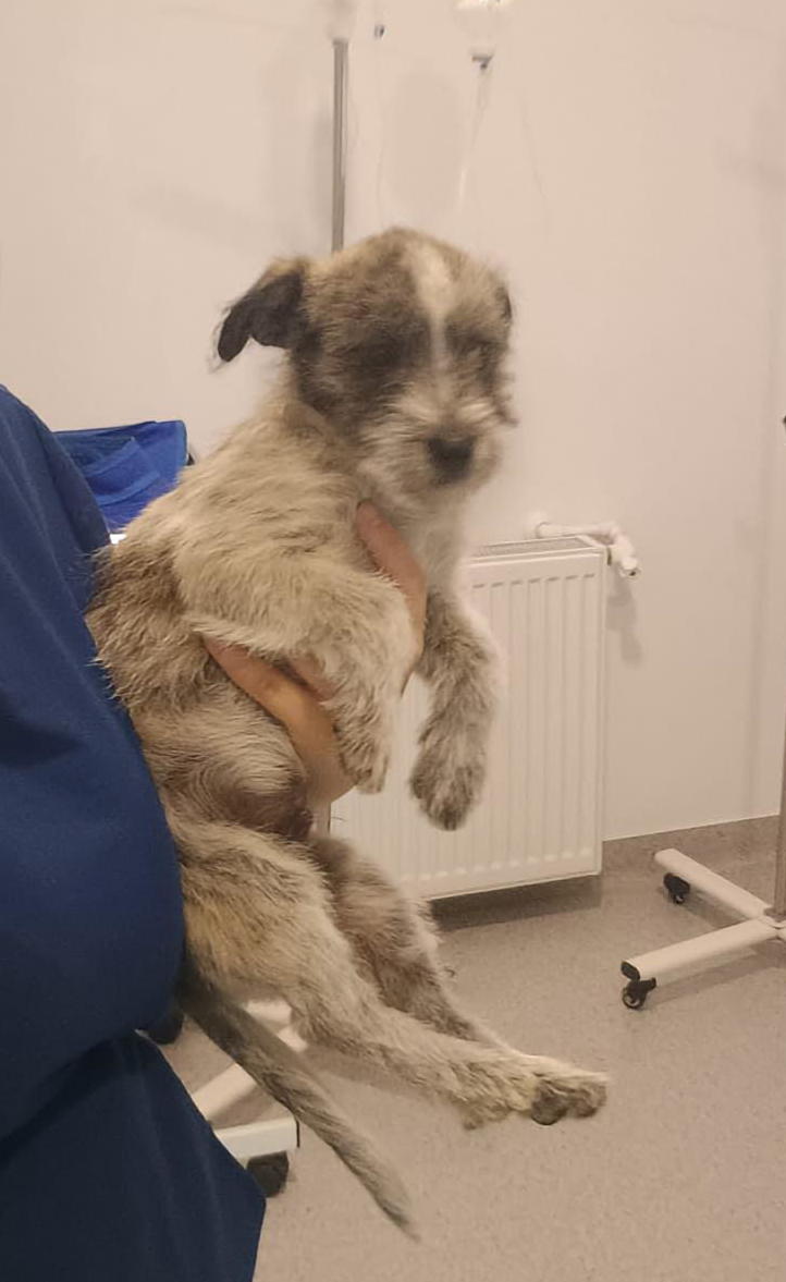 Scooby-Doo is gevonden door een mevrouw uit Tulcea (Roemenië). Zij hoorde ’s nachts een hondje paniekerig huilen en ging de volgende ochtend gelijk op zoek naar waar het gehuil vandaan kwam. Uiteindelijk vond ze op een braakliggend terrein, tussen twee woningen in, een pupje dat door een schutting had willen lopen maar hierdoor compleet vast kwam te zitten. Ze heeft hem bevrijd uit zijn benarde situatie maar wist niet wat ze er daarna mee moest doen. Een vriendin van haar is dierenarts assistente bij onze dierenarts en zo kwam hij bij dokter Vlad in de kliniek terecht. Wij kwamen voor heel andere zaken in de kliniek en zijn daar aan hem voorgesteld en natuurlijk de vraag of wij hem op wilden nemen.