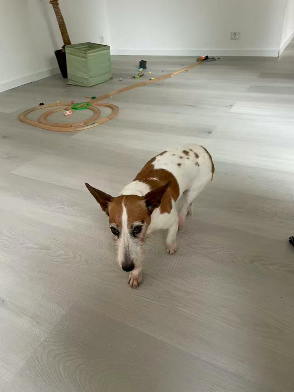 Onze hond is een vriendelijke en aanhankelijke hond met een zachtaardig karakter. Ze is dol op menselijk contact en gaat goed om met kinderen en andere honden. In huis is ze rustig en blaft ze weinig. Ze is over het algemeen gezond, alleen heeft ze een klein gaatje in een tand. Ze heeft wel veel aandacht nodig en blijft niet graag alleen thuis. Dagelijkse wandelingen zijn belangrijk voor haar; aa