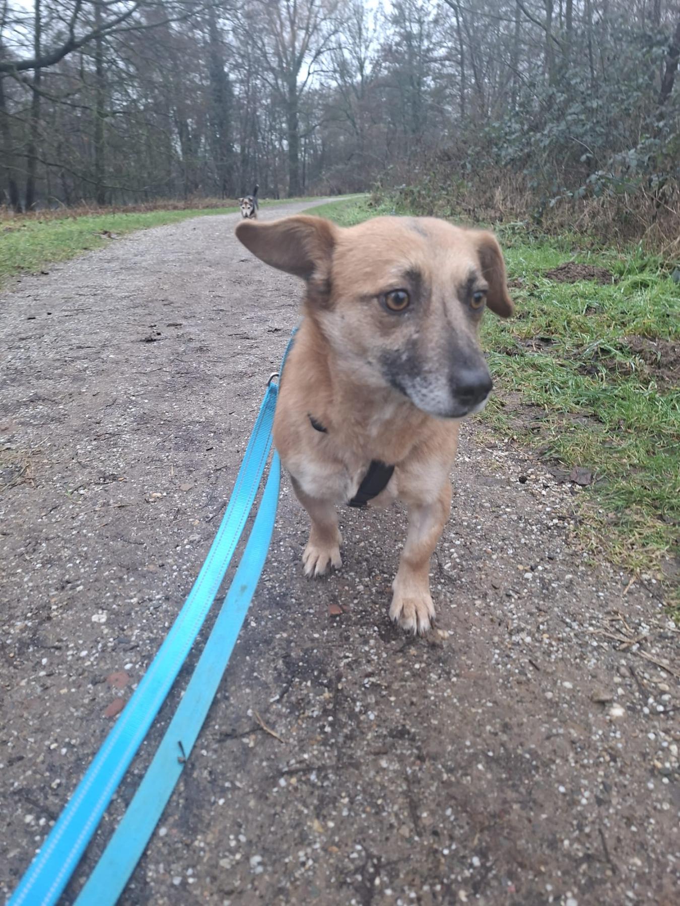 Spicy is een lieve, rustige hond die dol is op knuffelen, maar zich ook prima alleen kan vermaken in haar mandje. Ze kan goed omgaan met andere honden en speelt graag met hen.