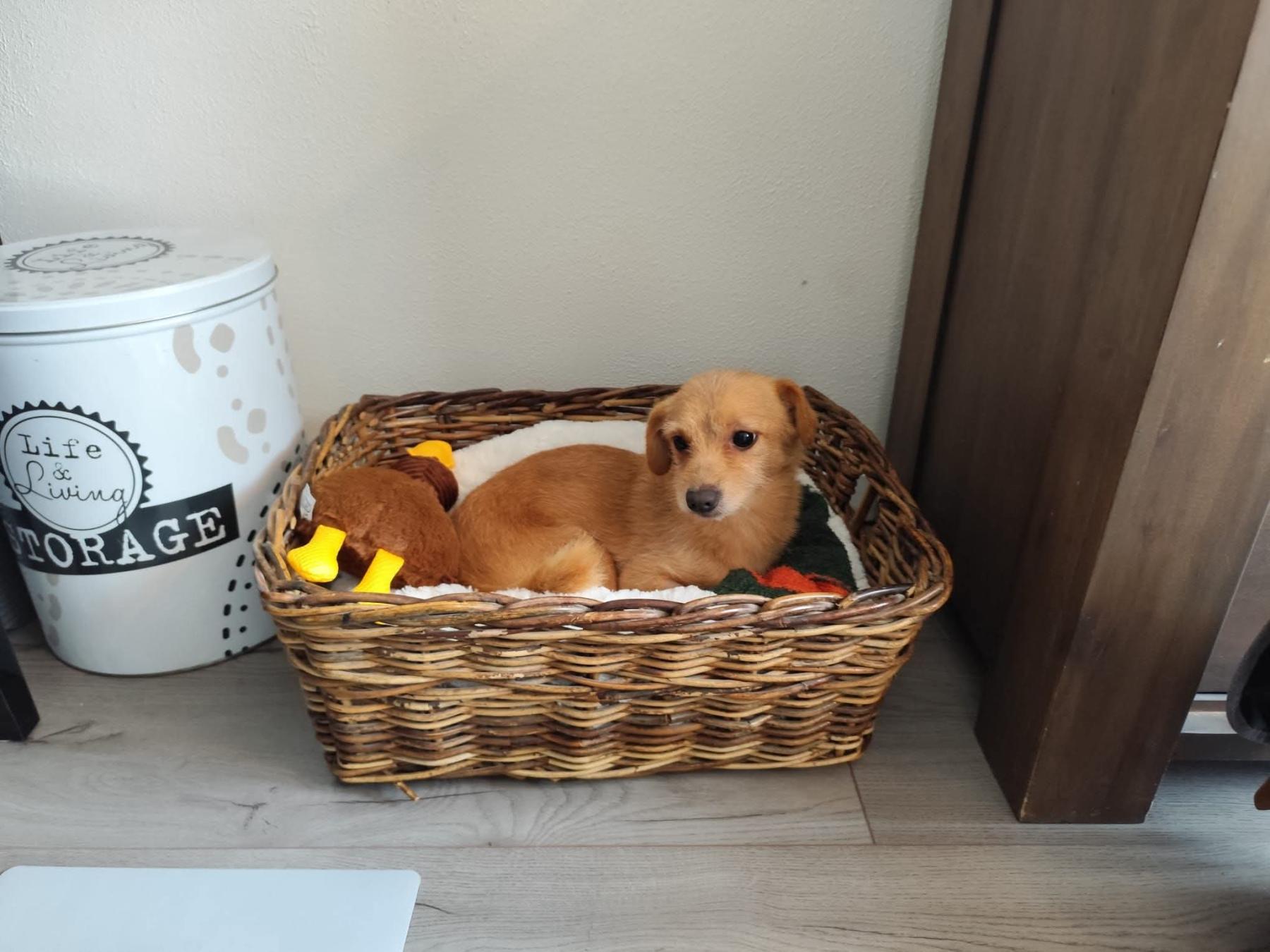 Lief, aanhankelijk, ligt graag bij je in bed. Beschermd zijn voedsel en kan blaffen als hij iets vreemd zit. Nog maar kort in Nederland dus is nog aan het acclimatiseren