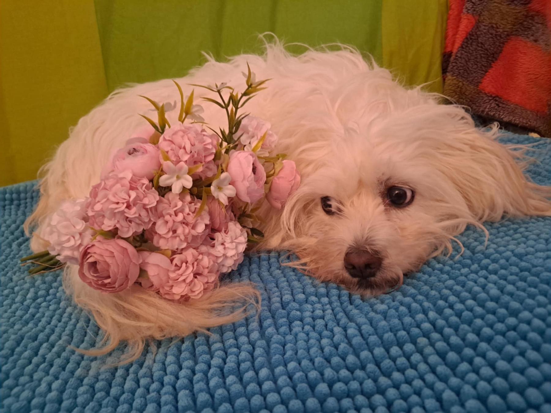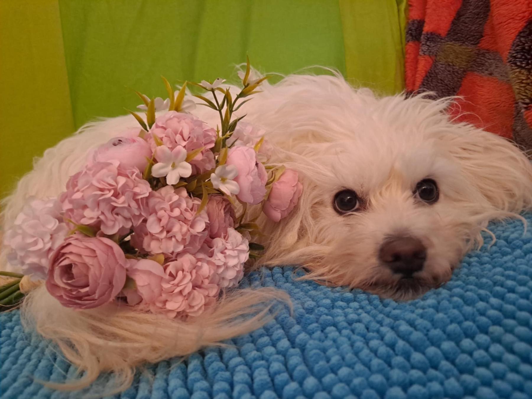 Vriendelijk, aanhankelijk, goed met honden. Omgang met katten niet bekend. Het is niet bekend of ze al zindelijk is. Mogelijk moet u nog met haar trainen