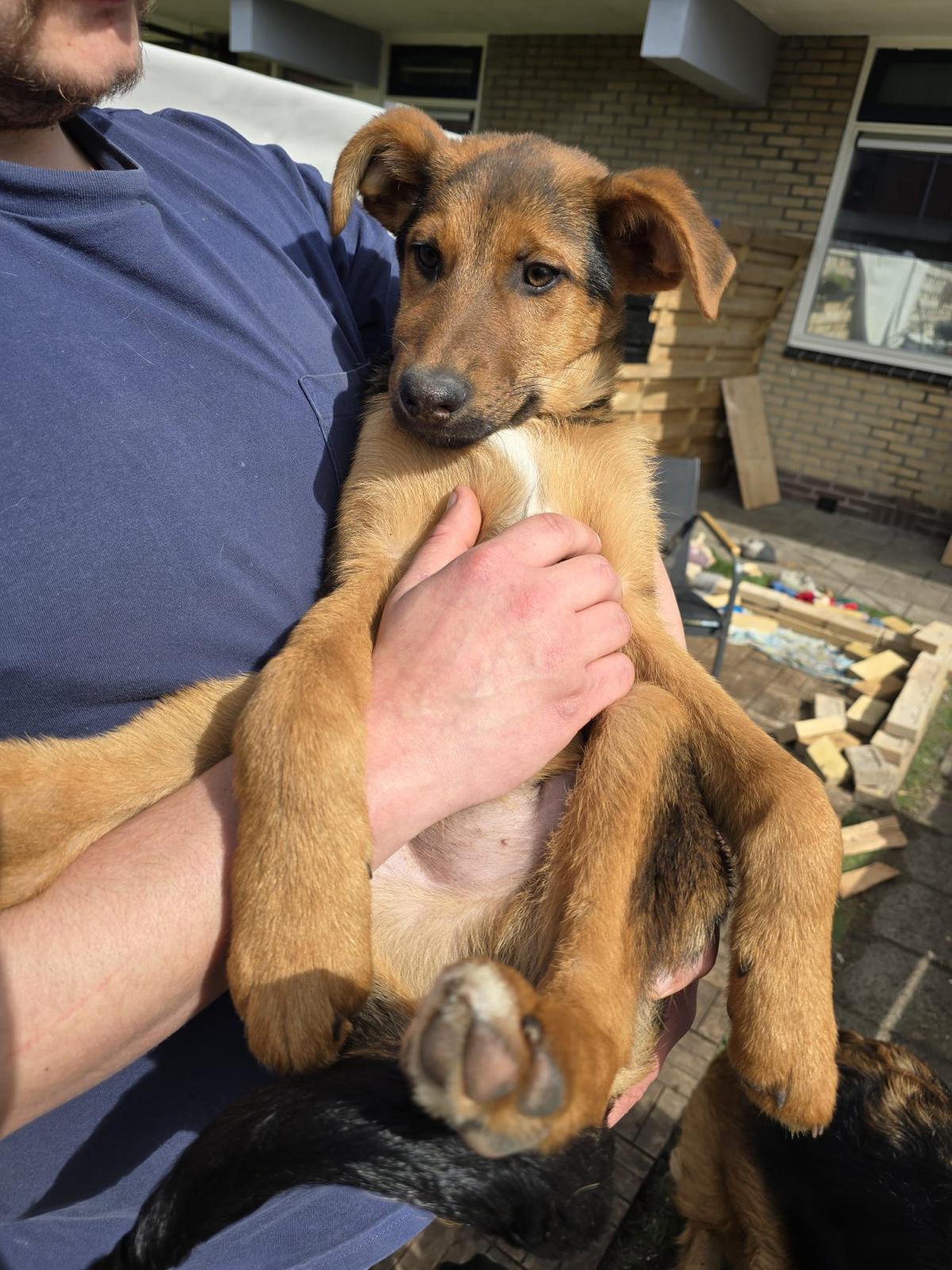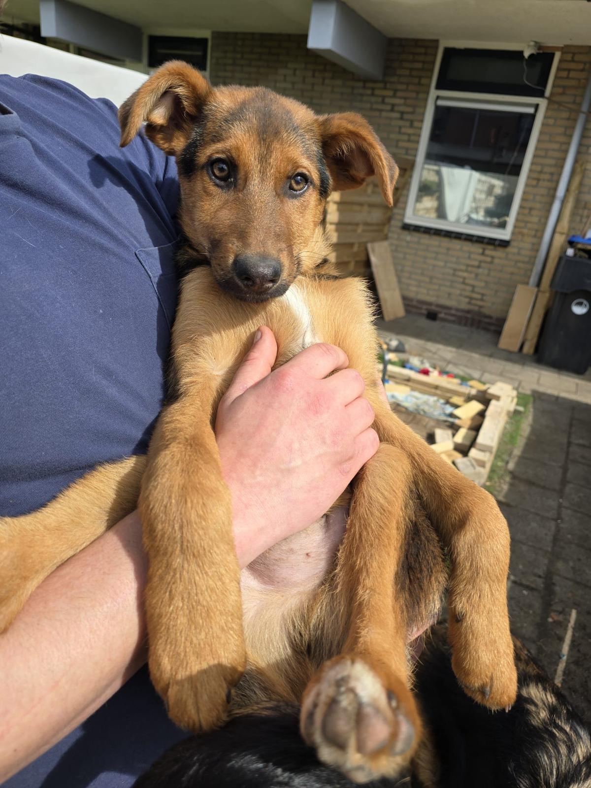 Sunny werd met Moeder Mia (duitse herder) en zusjes gevonden op straat in Bosnië