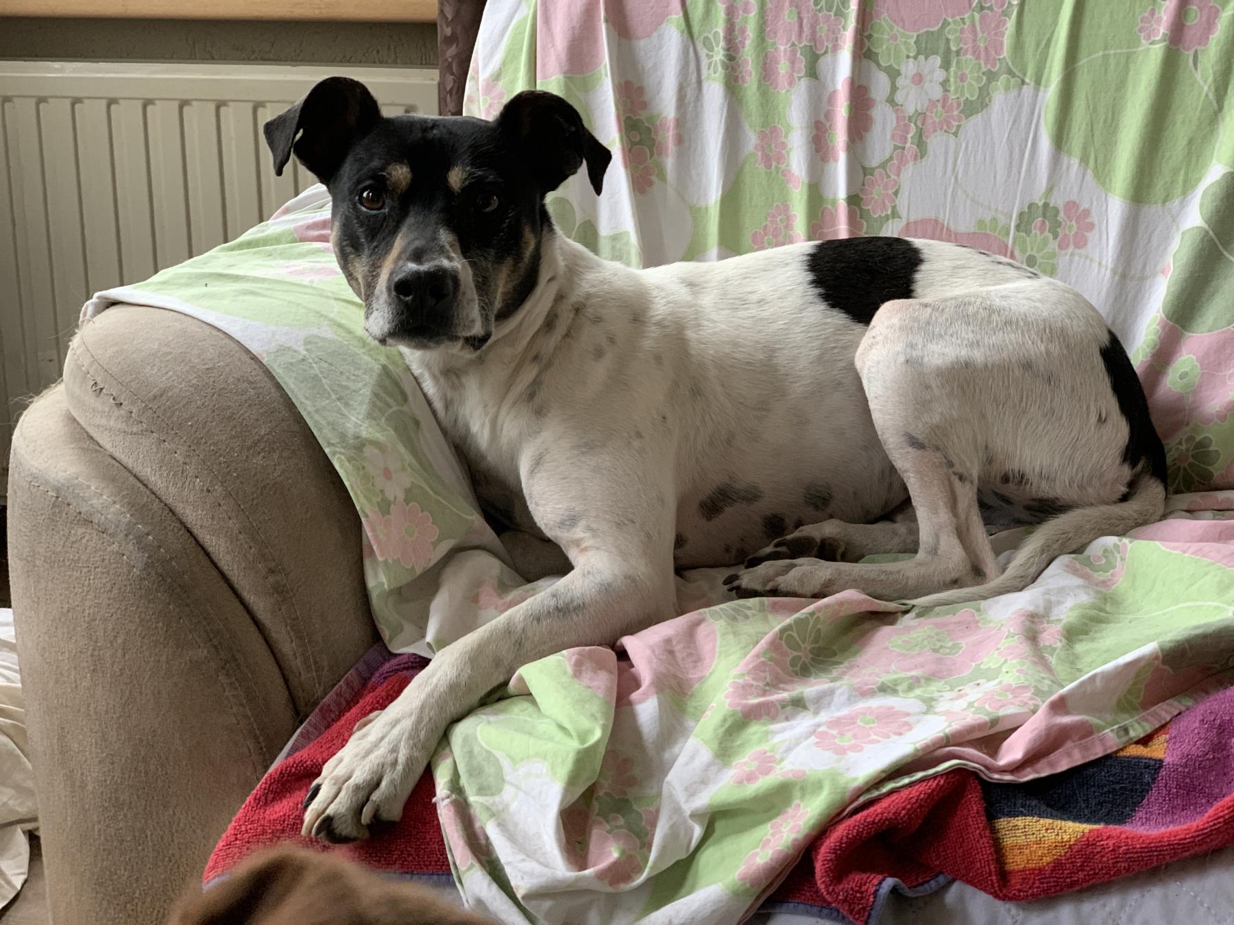 Trufa is bij eerste indruk makkelijk en niet angstig maar blijkt toch wat bijzondere aandachtspunten te hebben. Daarom zoeken we een ervaren baas die dat snapt en mee om kan gaan. Trufa is een actieve hond die graag wandelt, ook wel naast de fiets loopt en zo achter in de bench in de auto springt om mee te gaan voor een wandeling elders. Niet bang tijdens de vuurwerkperiode en aan de straat (30km weg met aan 1 kant huizen), niet bang voor verkeer en geen interesse in het winkelcentrum aan de overkant van de vaart. Echter in het bos blijft ze gedrukt om zich heen kijken. Liever wandelt ze op natuurlijke paden door de velden, en kan dan echt genieten, maar ook dan kan ze op sommige plekken plots wantrouwig in de verte kijken of omkijken en dan inene weg willen. Ze kan daarom niet los lopen want ze heeft in haar eerste jaren nooit geleerd dat ze steun kan ervaren bij een baasje. Ze is aanhankelijk en open, maar heeft ze als jonge hond geen positieve socialisatie op handling gehad en kan bij onverwacht vastpakken reageren en is bij lichamelijk onderzoek of zorg snel wantrouwig. Bij interesse stuur een directe mail naar opvanghonden@live.nl Graag wat motivatie en basis informatie zoals gezinssamenstelling, eventuele huisdieren, hoe u woont, de wandelomgeving, wat u wandelt, hoe de tuin omheind is (en hoe groot en of er ook gras is om samen te ballen) en hoe vaak en hoe lang Trufa bij u alleen zou moeten zijn.