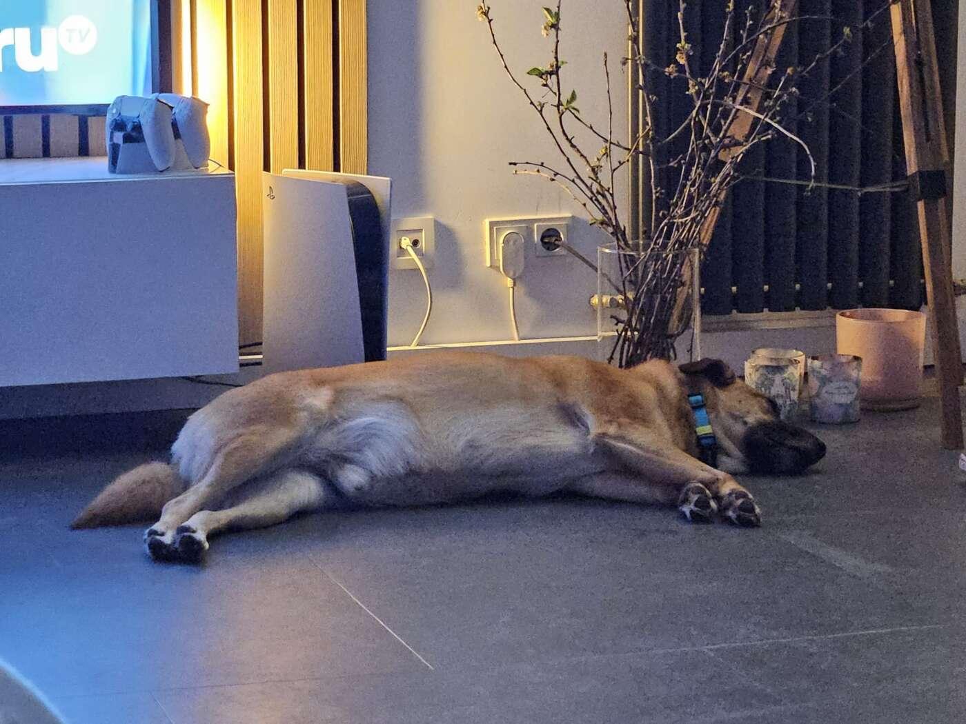 Hij kan alleen blijven, sloopt niets en is rustig in huis. Hij ligt graag in de tuin of in het zonnetje.