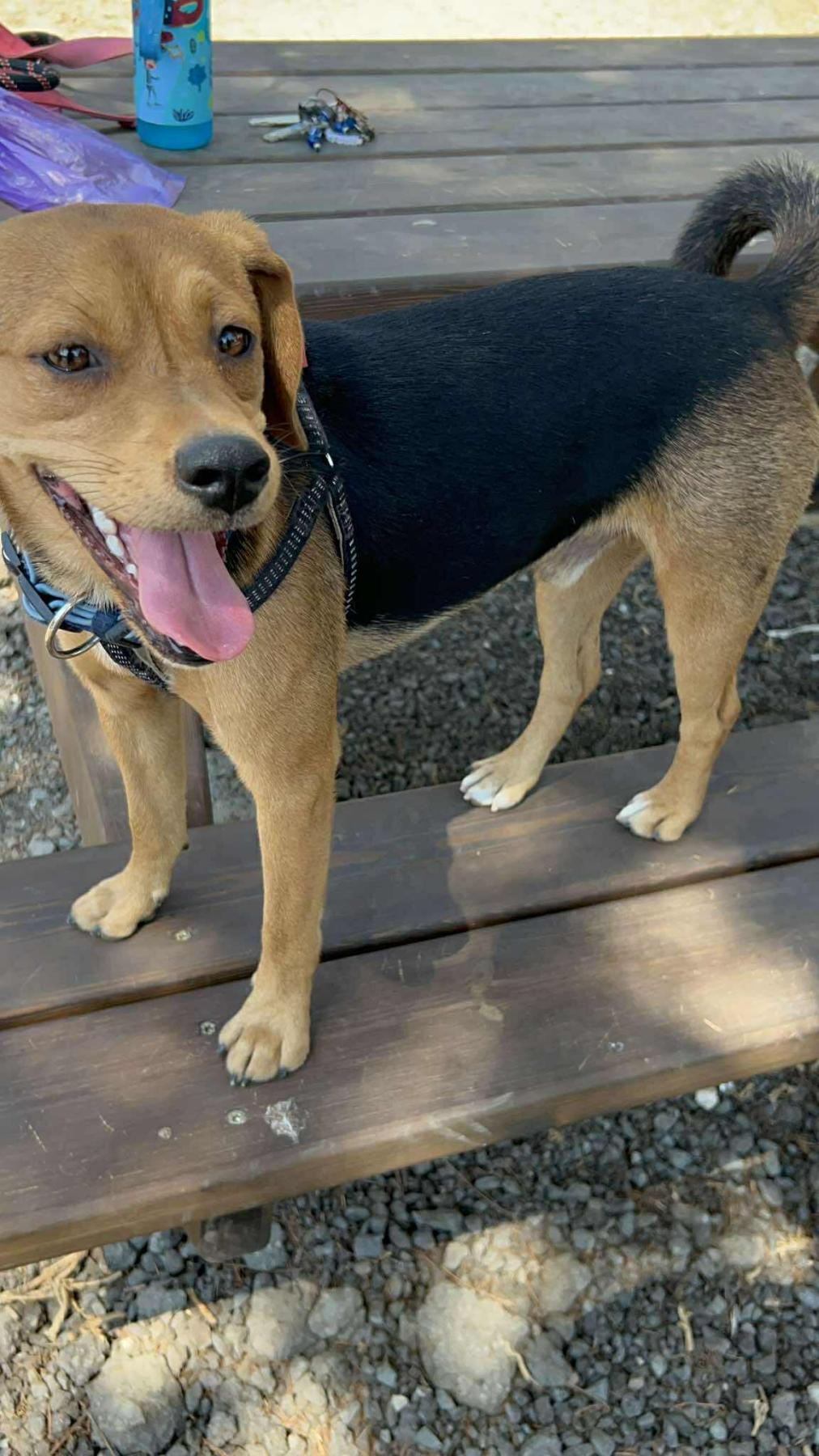 Deze lieve jongen is een 7 maanden oude Griekse Hound-mix en op zoek naar zijn gouden mandje!