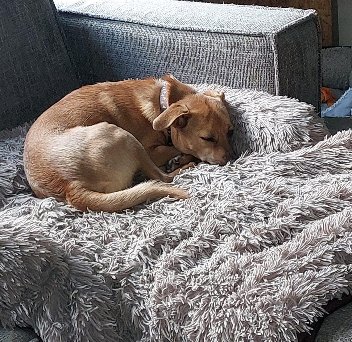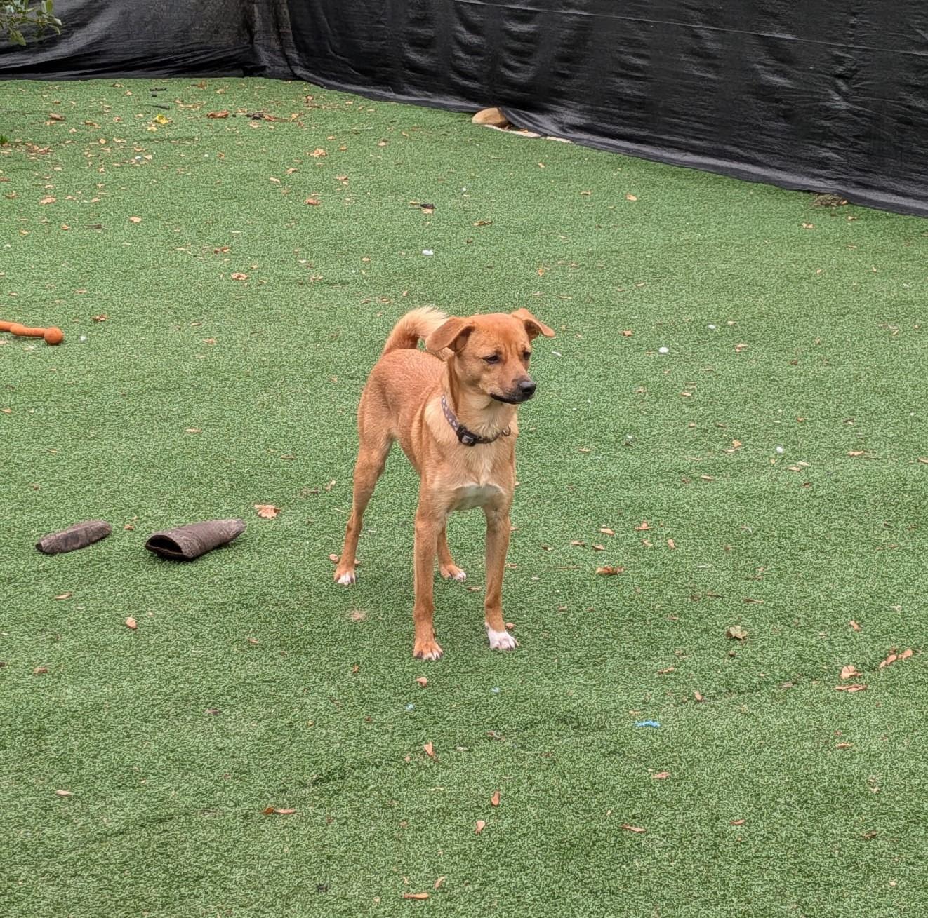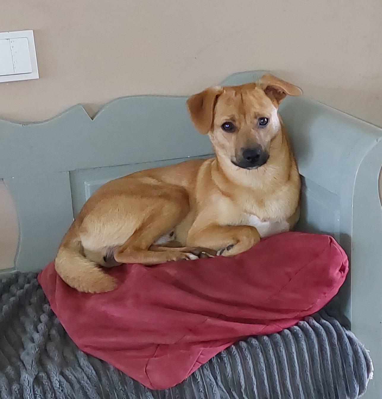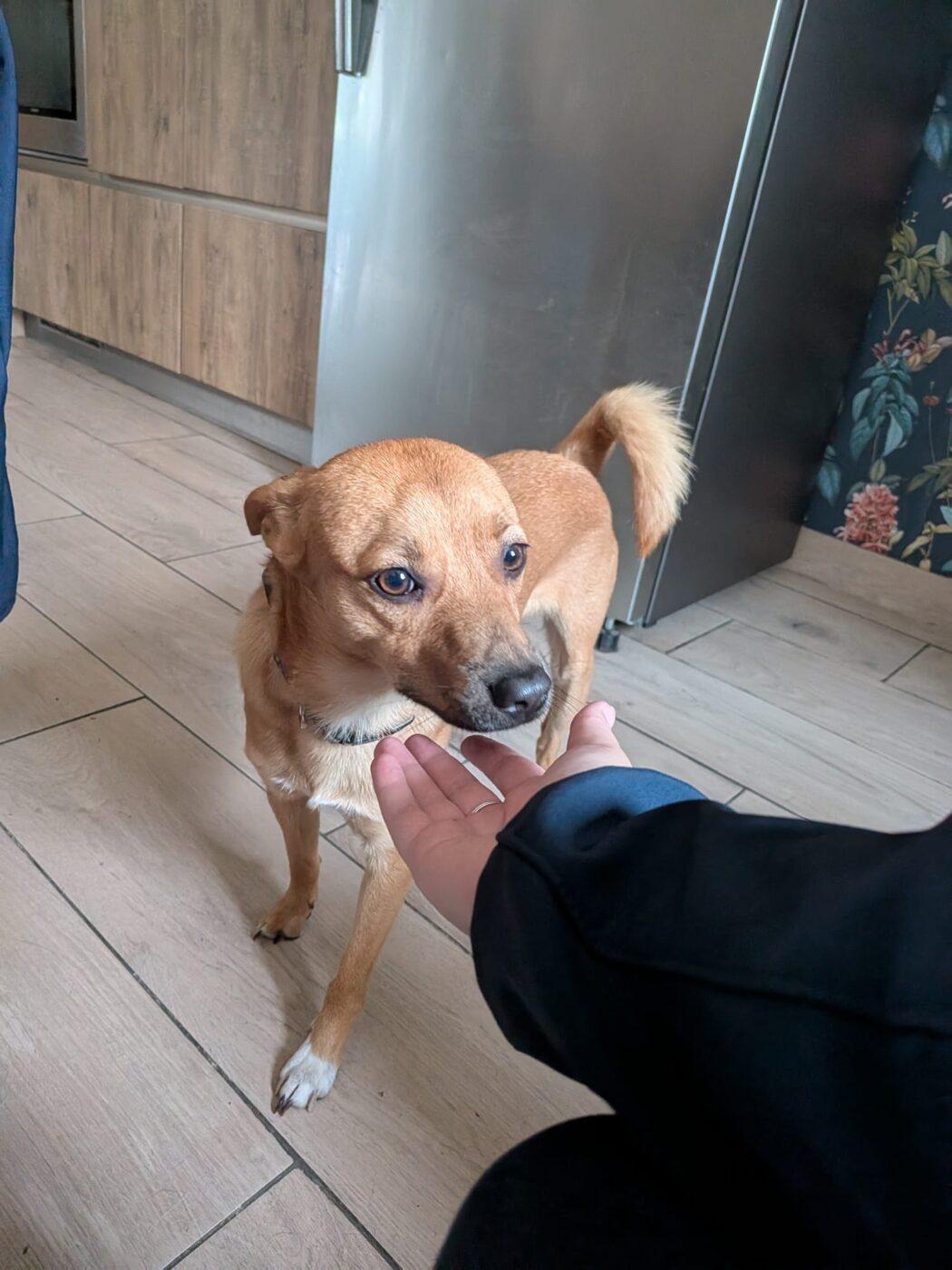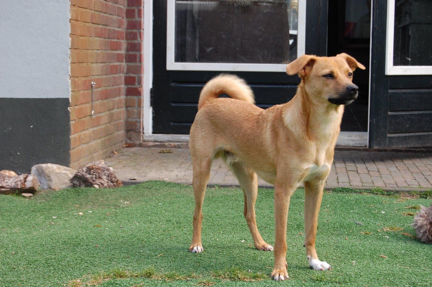 Van een onzeker en bang hondje is Yellow opgebloeid naar een super lieve en vriendelijke jonge hond.