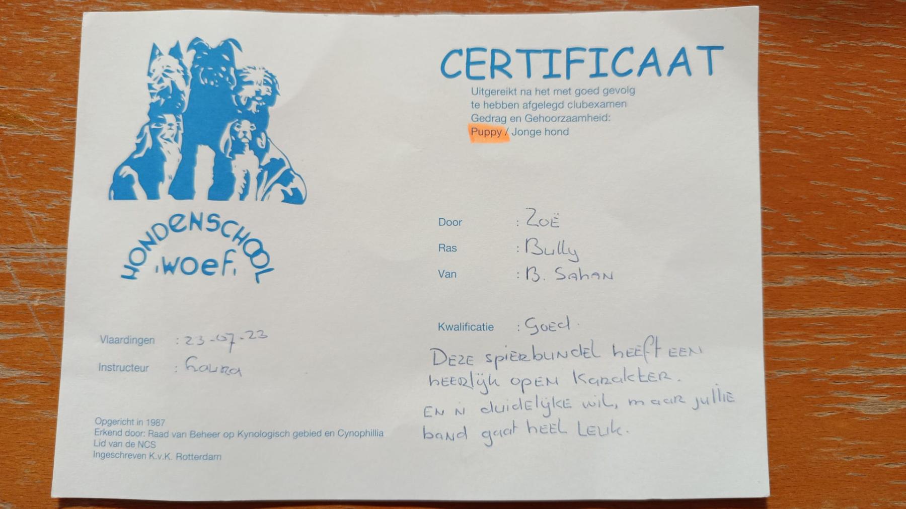Ze is lief, volgzaam, voorzichtig en alert. Ze kan goed met kinderen, heeft ook een tijdje met een kat gewoond en dat ging goed.