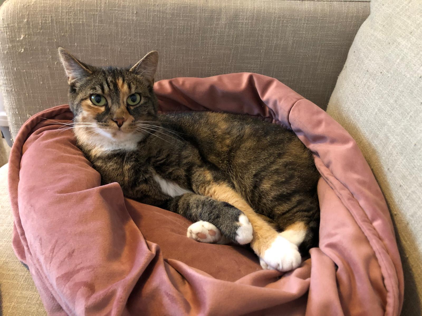 Daisy is een lieve aanhankelijke poes die van knuffelen en aaien houd. Schoot liggen doet zij niet, maar wel lekker tegen je aan liggen. Als zij genoeg heeft van het aaien en knuffelen kan zij jou een tikkie geven en loopt dan weg. Daisy houd ervan om buiten rond te scharrelen. Nu wat minder, want het is koud buiten.
