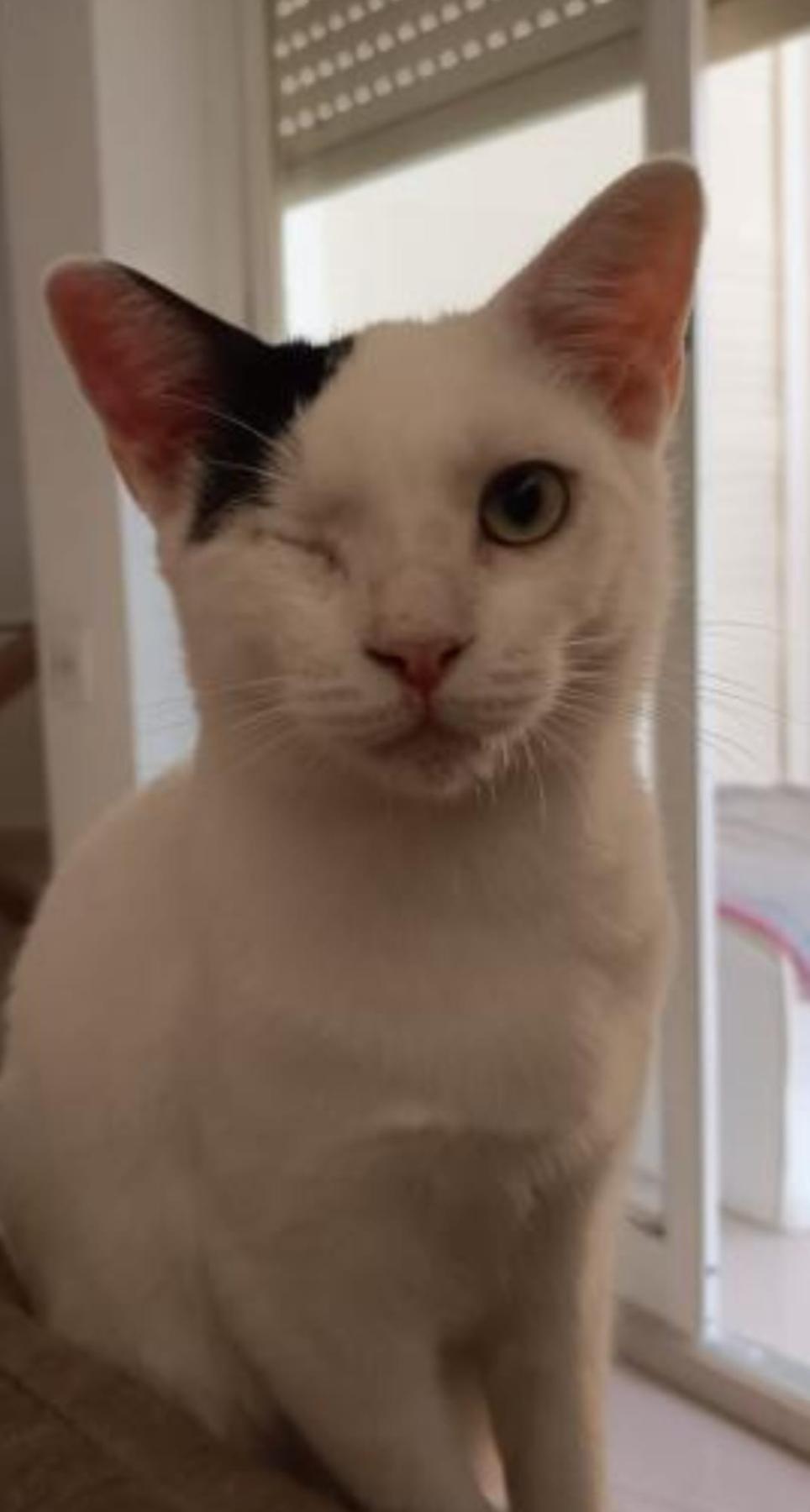 Homer is een vriendelijke leuke kat. Hij is nog zo jong en heeft al zoveel meegemaakt. Hij is naar het asiel gebracht door iemand die hem op straat gevonden heeft. Hij had een oog dat er echt heel slecht aan toe was. Eén van de vrijwilligers nam hem mee naaar huis en zorgde heel goed voor hem, maar zijn oog kon niet meer gered worden. Zijn oogje is verwijderd en nu is hij een blije gelukkige één-ogige kattenjongen.