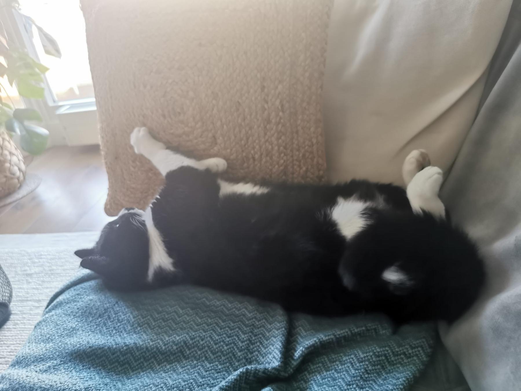 Ze is een knuffel kat. Zit graag op schoot of op de bank. Als ze je vertrouwd kan je ook vaak haar buikje aaien. Ze kan wat moeilijk wennen aan kinderen. Daarbij kan het zijn dat ze met andere katten minder goed kan opschieten maar dat kan ook specifiek aan onze kat liggen. Speelt ook graag buiten