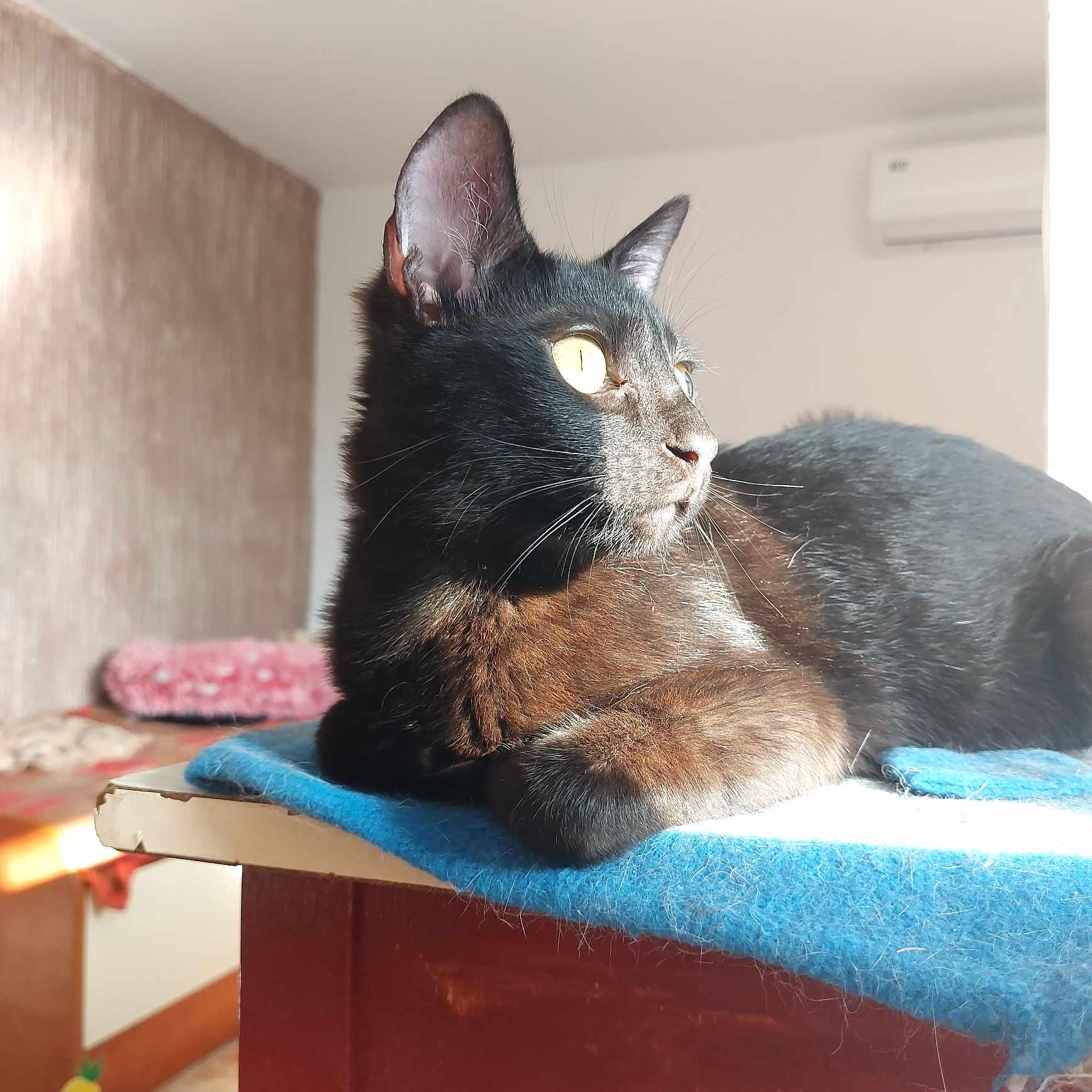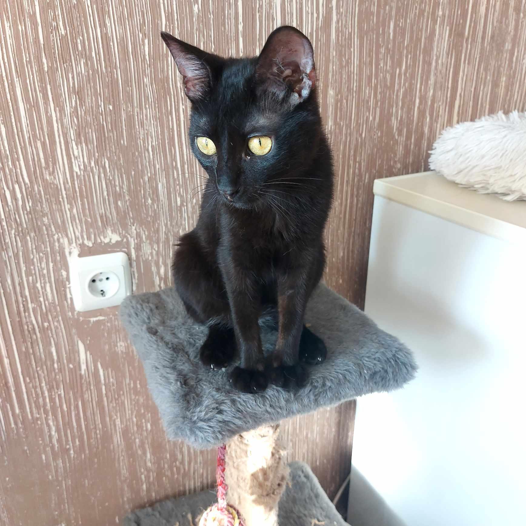 De moeder van Jelly, Josefine, zette haar kittens op de wereld in de garage van de rescuer, in een doos achter de auto. Ze was naar binnen geslopen terwijl haar vriend in de garage aan het werk was. Ze namen de hele familie in de opvang, Jelly is dus nog nooit buiten geweest en niet gewend aan buiten