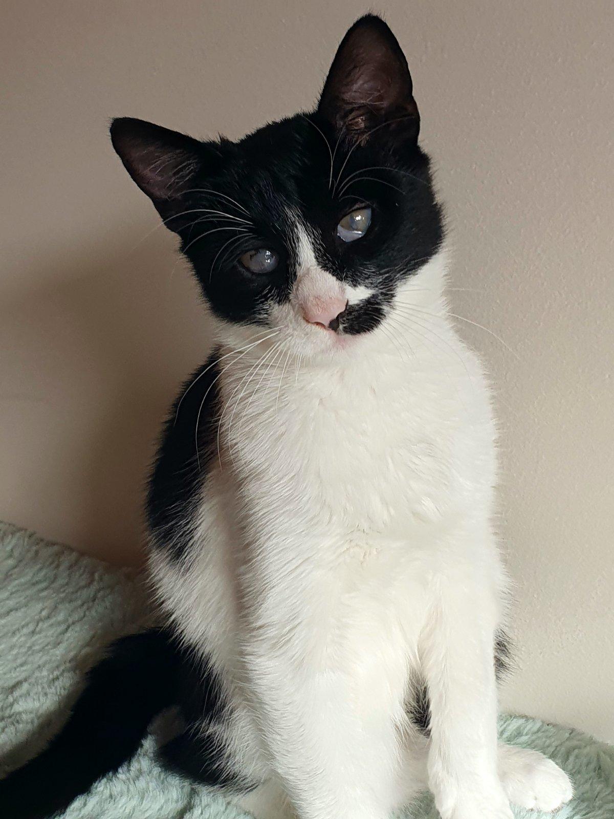 Karl is heel ziek geweest als baby en heeft daardoor vrijwel zijn volledige zicht verloren. Hij is rustig, kalm en intelligent. Het is een heel aanhankelijk diertje. Hij is dol op mensen. Hij kan goed overweg met katten en houd van slapen op je schouder, onder een dekentje. Hij geniet ervan vastgehouden te worden. Hij woont in het gastgezin in de slaapkamer, met nog een paar andere kittens. In de woonkamer zijn een hond en twee volwassen katten. Hij is gewend aan het geluid en de geur van hun aanwezigheid.