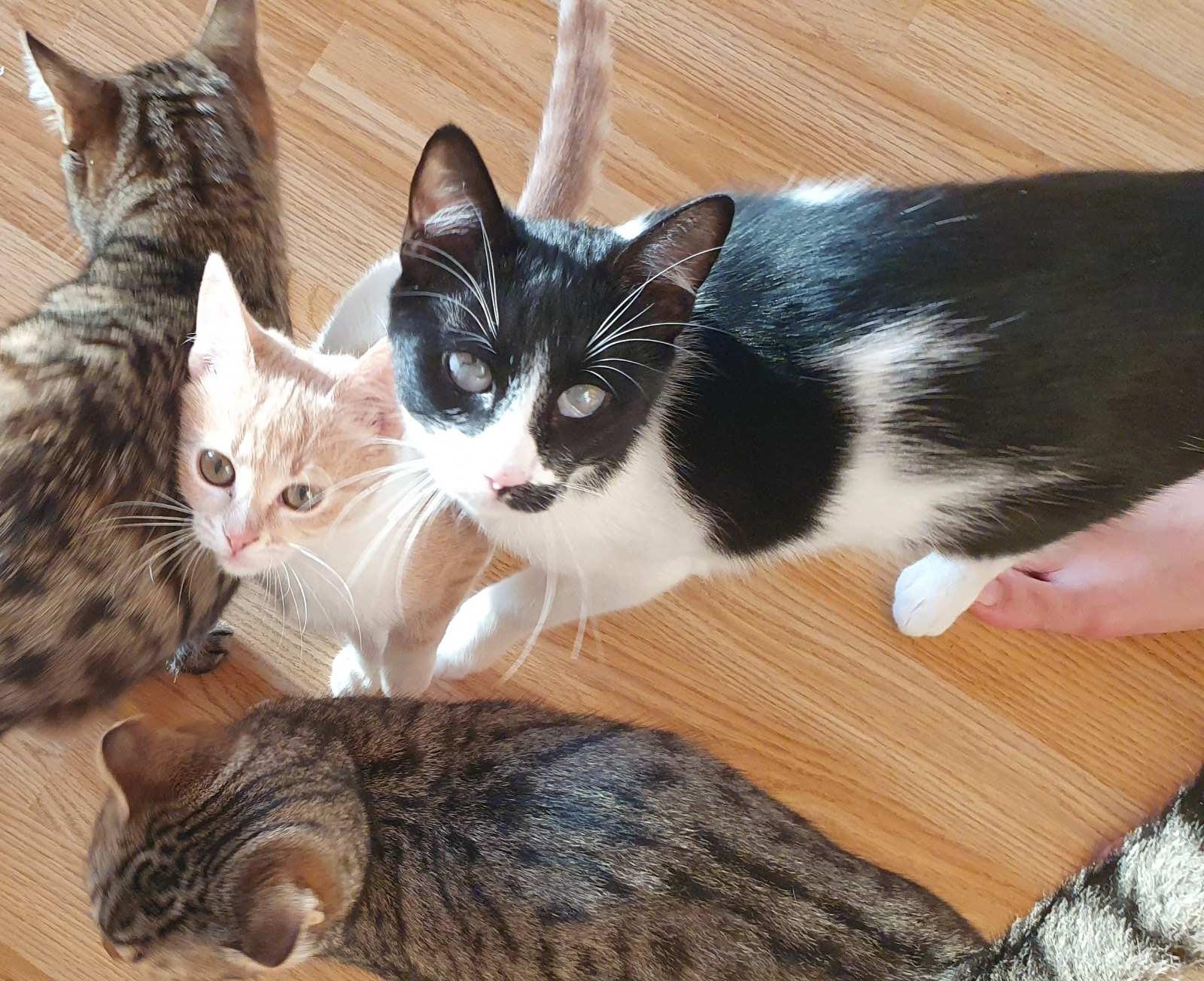 Karl en zijn zusje zijn heel ziek gevonden. Ondanks de behandeling verloren ze alletwee hun zicht grotendeels. Ze mogen in een gastgezin logeren, waar de blinde en bijna blinde katjes samen zitten. Ze zijn gewend aan knuffelen en opgepakt worden.