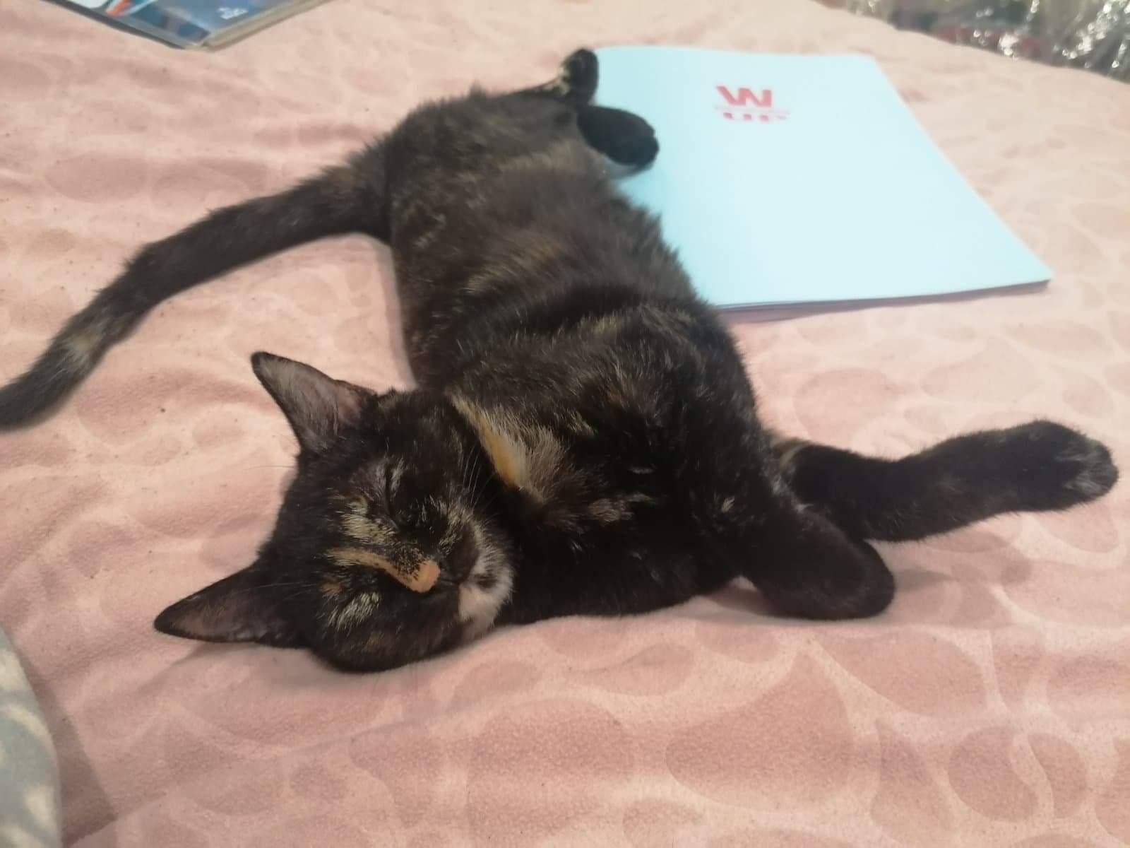 De andere blessure was in de streek van de heup. De chirurg gaf aan dat het waarschijnlijk vanzelf goed zou groeien door haar leeftijd. Dat gebeurde ook. Ze zal altijd wat hinkelen. Toen ze klaar was voor de tweede operatie had haar lijfje het al zelf opgelost. Het geopereerde beentje is ongeveer een centimeter korter dan het andere beentje. Volgens de chirurg heeft ze geen pijn meer en kan ze zo goed functioneren. Ze kan ermee rennen, klimmen, springen, gewoon zoals andere katten.