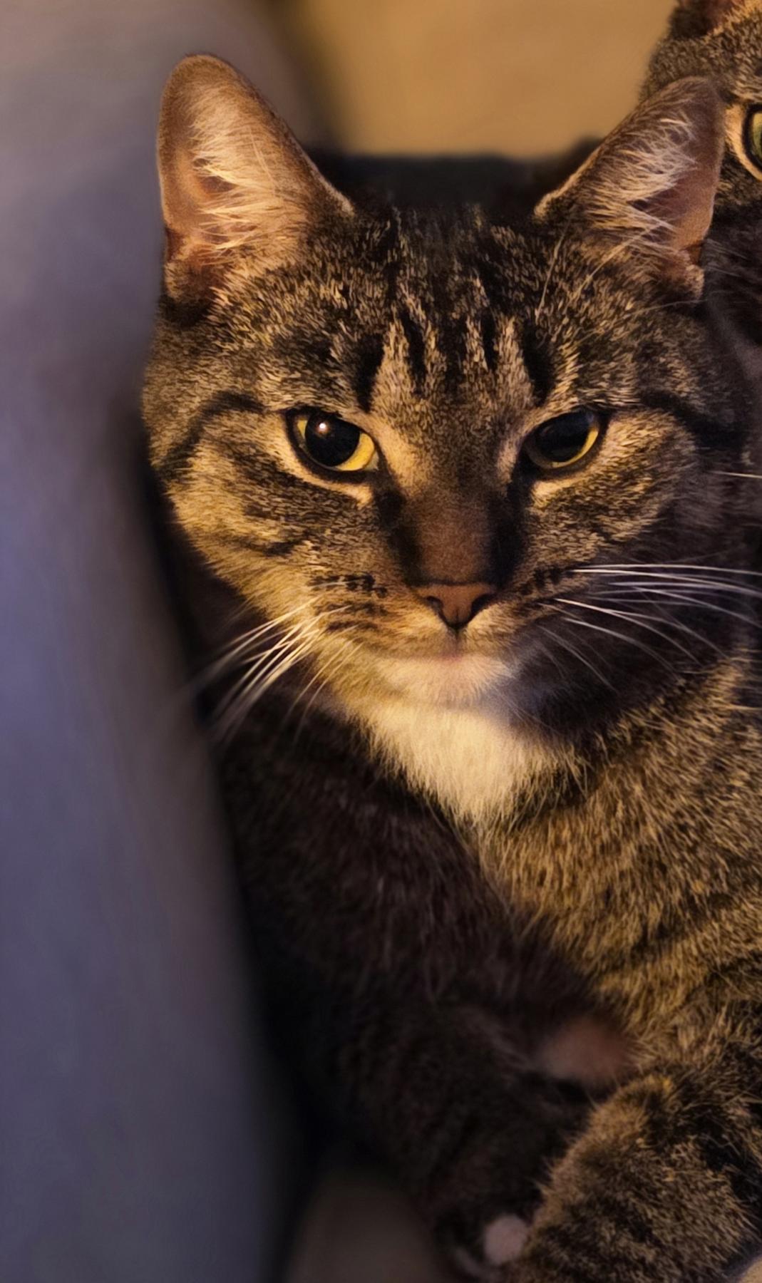 Lieve aanhankelijke kat die het fijn vind om aangehaald te worden. Ze is graag buiten op avontuur. Ze is gek op eten en aandacht
