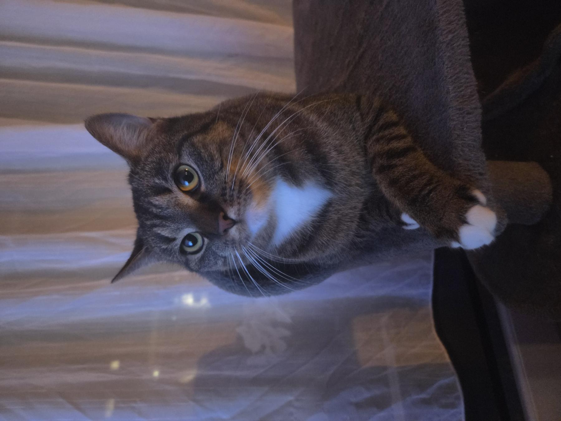 Ze is echt een hele lieve poes, houd van eten en ze is gewoon graag buiten. Dus een huisje waar ze dat zou kunnen zou heel fijn zijn. Ze is opgevoed met 2 kinderen van 8 jaar en 3 jaar dus ze is wel wat gewend. Buiten gaat ze heerlijk op pad. Na het eten krijgt ze altijd haar dolle bui en rent ze het hele huis rond. Voor de rest kan ze heerlijk dutten. Samen spelen vind ze ook heel leuk en doet ze graag.
