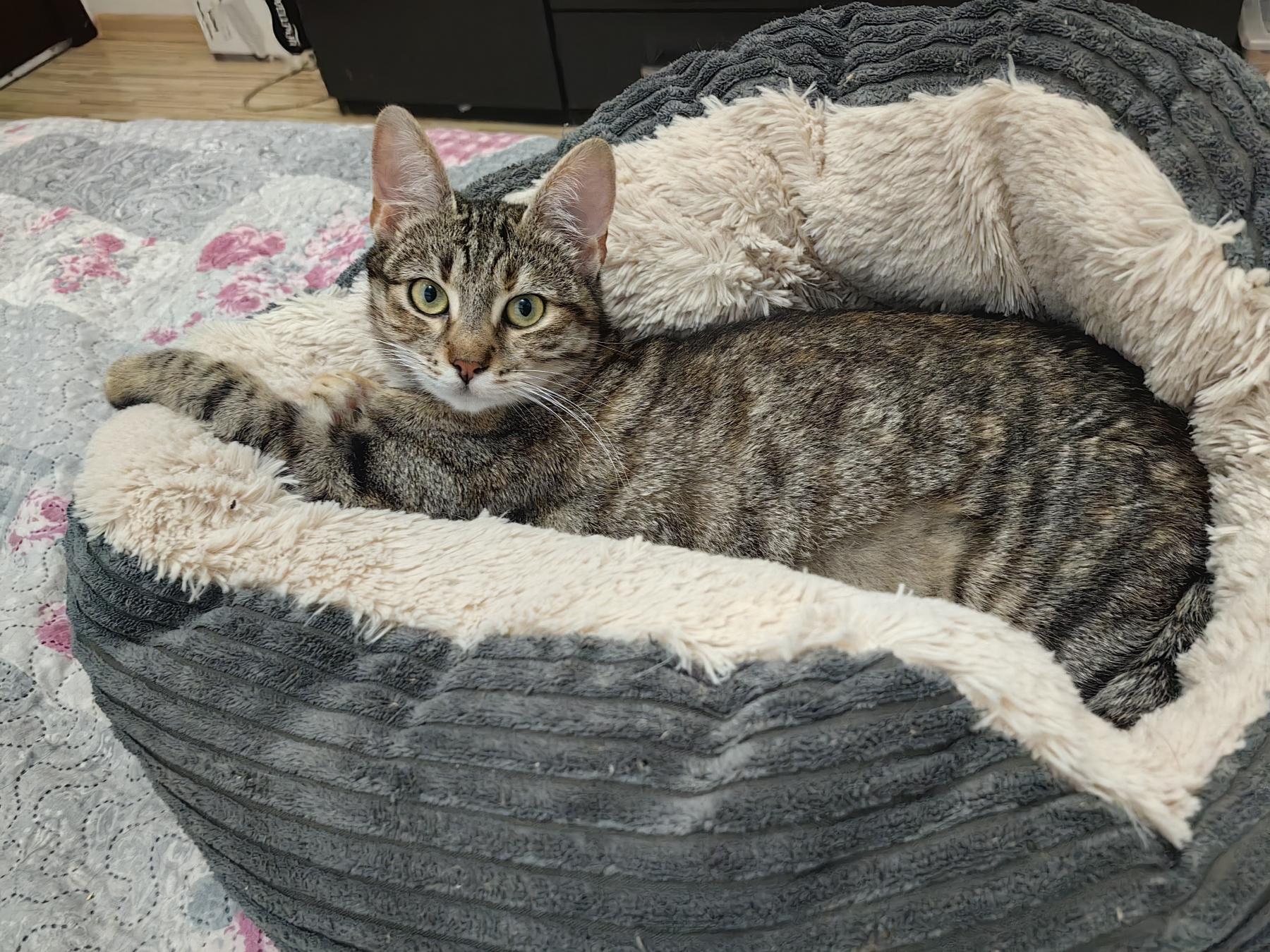Lucy is ontzettend grappig, speels en vrolijk. Ze is vriendelijk, sociaal en dol op knuffelen. Ze vindt het heerlijk om bij ons of bij andere kattenvriendjes te slapen. Ze houdt van de hele wereld. Ze is dol op natvoer. Haar rescuer weet zeker dat ze een deur zou kunnen openduwen om bij een bakje natvoer te komen. Ze is een geweldig huisdier dat veel vreugde en gelach zal brengen in haar nieuwe thuis. Ze klimt graag in grote krabpalen en slaapt graag in dat ronde gedeelte dat op sommige foto's te zien is. Ze houdt van zachte bedden. Ze is een kleine prinses.