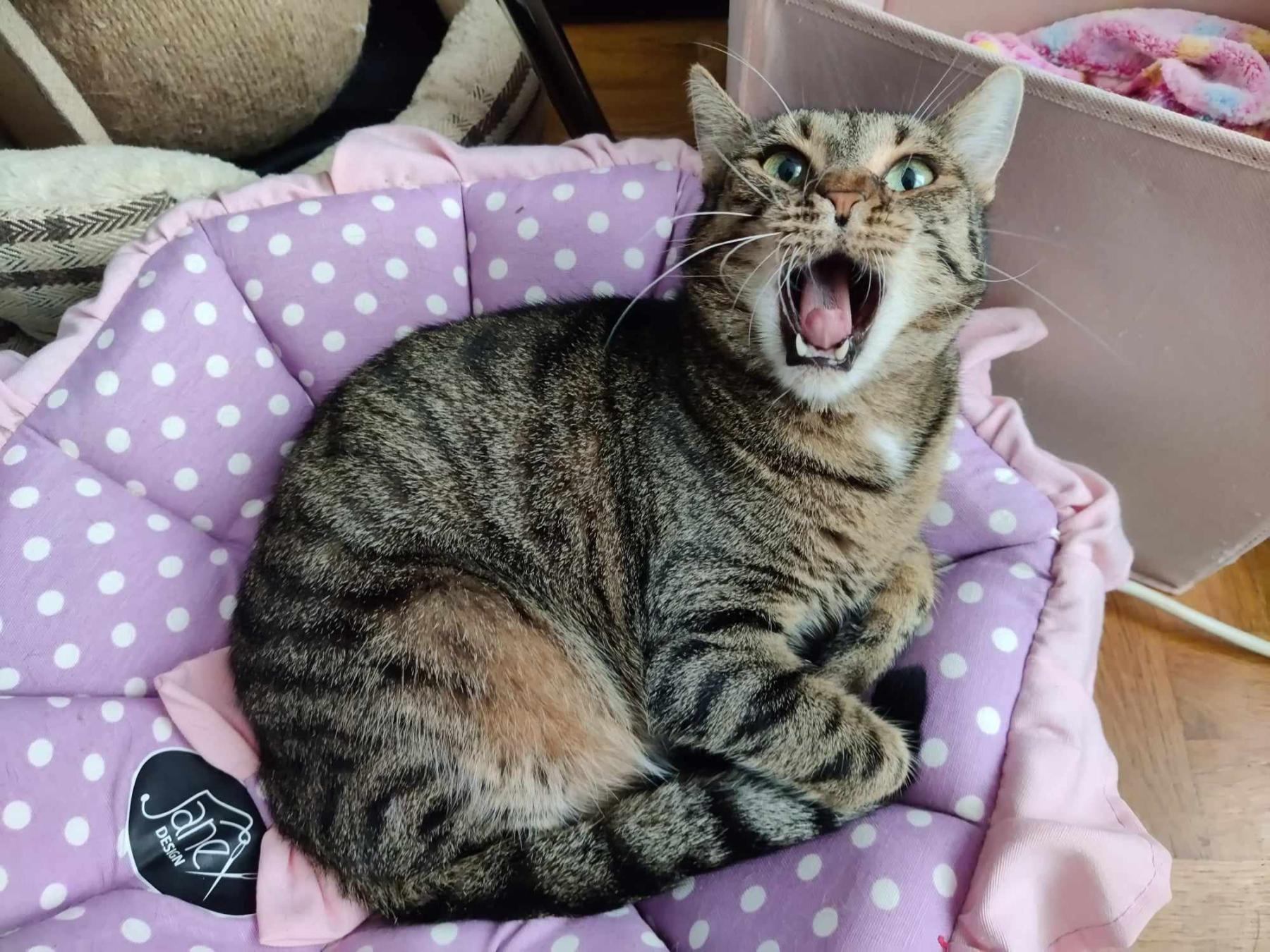 Marcy is een luie, knuffelige en grappige poes. Ze heeft eten, aandacht en ruimte nodig. Ze miauwt luid als ze iets wil. Ze zegt dat ze eten wil, of aandacht. Soms geeft ze liefdesbeetjes als je haar aait. Het is haar spelletje maar daarom willen we haar niet bij kleine kinderen plaatsen. Ze is heel grappig. Ze doet veel dingen terwijl ze op haar rug ligt. Zichzelf schoonmaken en spelen bijvoorbeeld. Dat maakt alles wat ze doet grappig om te zien. Het kan allemaal handiger, maar het is haar manier. Ze heeft een babykatje geadopteerd, die heel gestresst en schreeuwend binnen kwam in de opvang. Het is zoals ze zelf heeft meegemaakt zoals je kunt zien in haar verhaal hieronder.