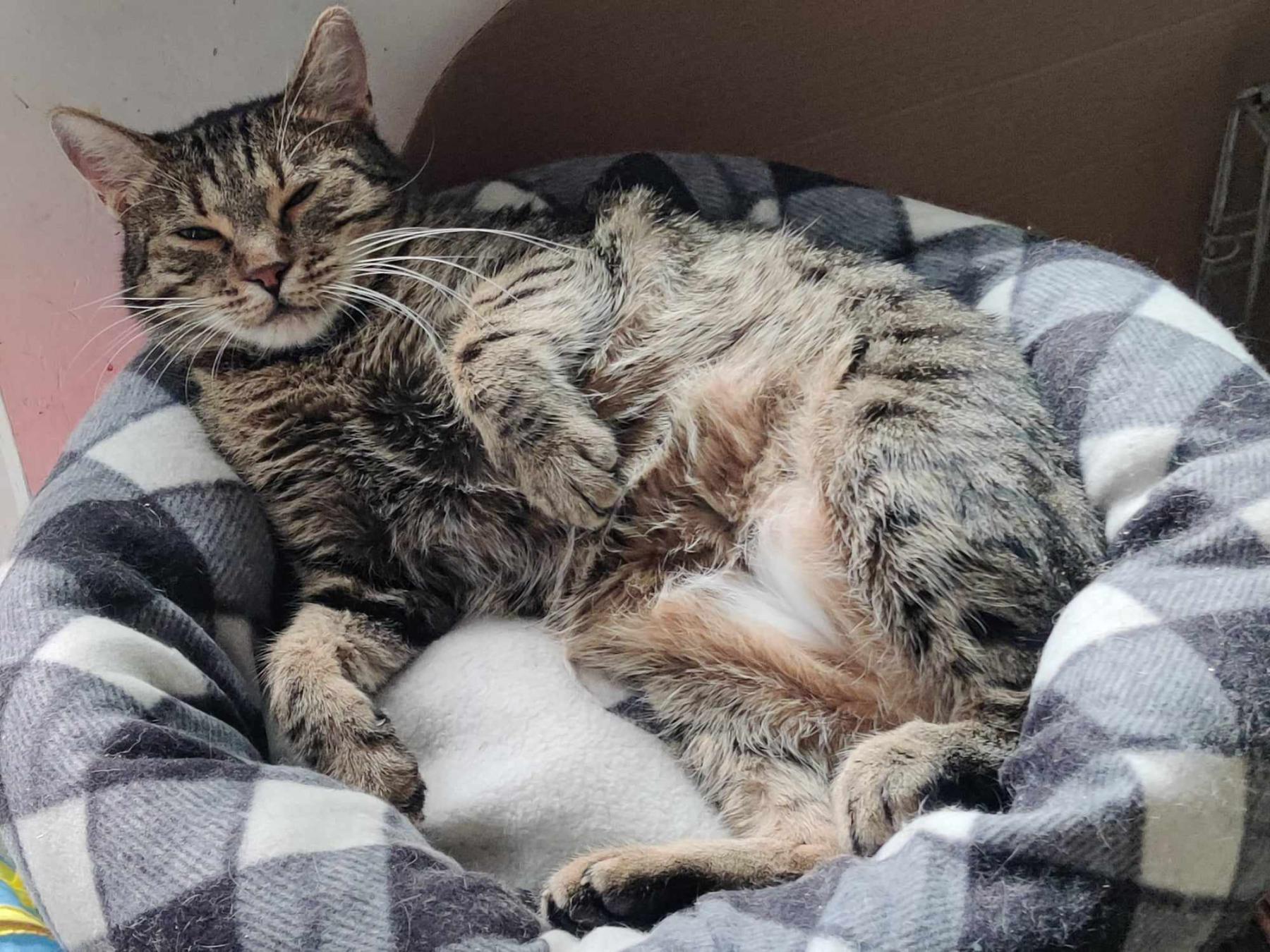 Kerst 2022. Een man belde rescuer Liliya en liet haar sprakeloos achter. Zijn ex-vrouw is psychisch ziek en ze vertrok een maand ervoor naar de UK. Het appartement waar ze woonde stonk en de buren belden hem op. Hij opende het appartement. Alles lag vol afval en opeens zag hij wat rondrennen. Het was Marcy, die zichzelf een maand in leven heeft weten te houden door water uit een emmer in de badkamer te drinken en het eten? Ze weten het niet, waarschijnlijk lag er ergens voer in huis. Ze is gevangen met een vossenval. Ze was botjes met een vel eroverheen. Ze was vies, stonk en ze schreeuwde de longen uit haar lijf. Het was verschrikkelijk haar zo te zien. De dierenarts heeft haar onderzocht en beveistigde dat de organen niet waren aangestast. Ze herstelde gelukkig snel en ze ging met Liliya mee naar huis, omdat ze gestresst raakte van de grote groep.