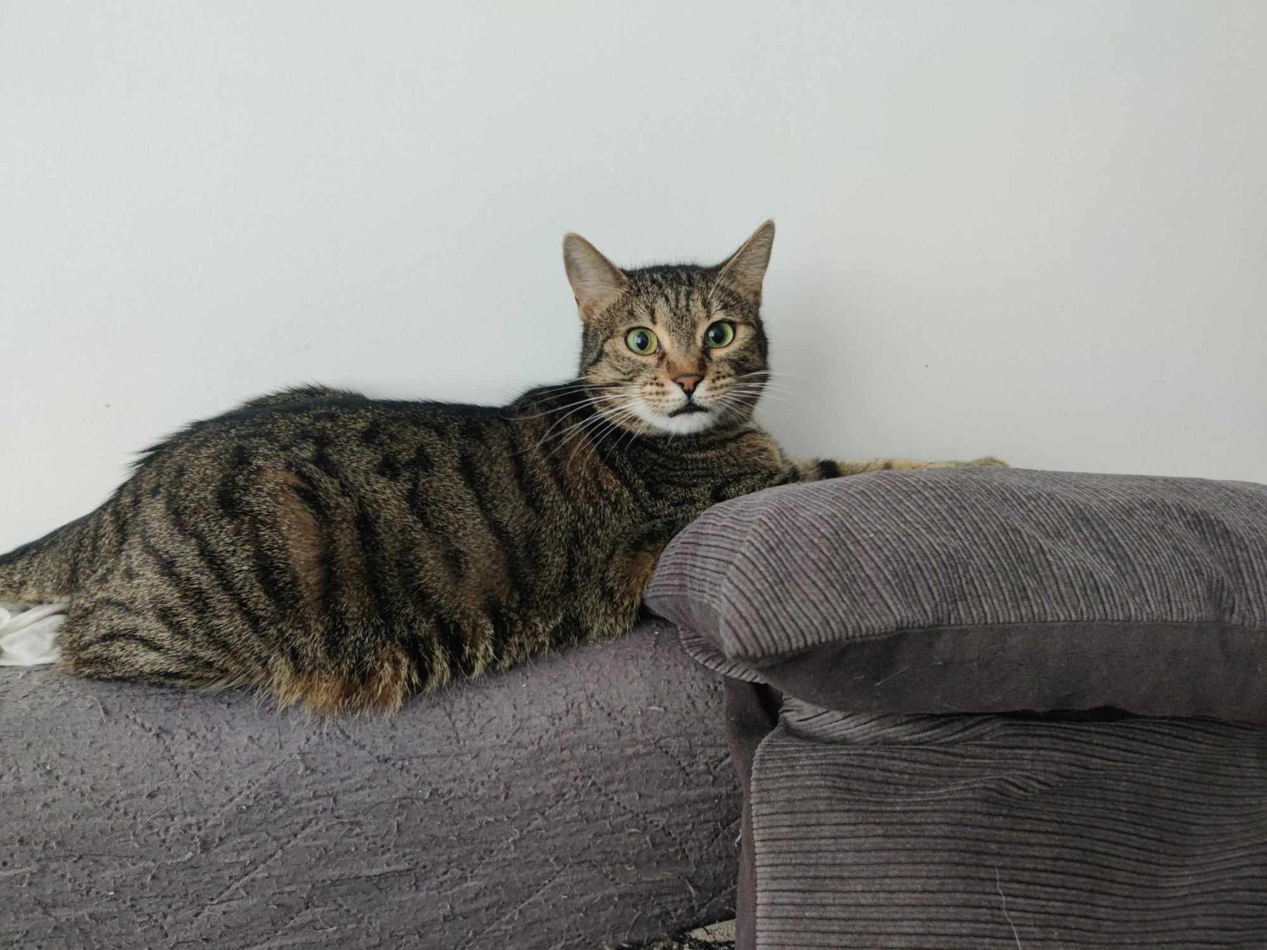 Marcy is een luie, knuffelige en grappige poes. Ze heeft eten, aandacht en ruimte nodig.