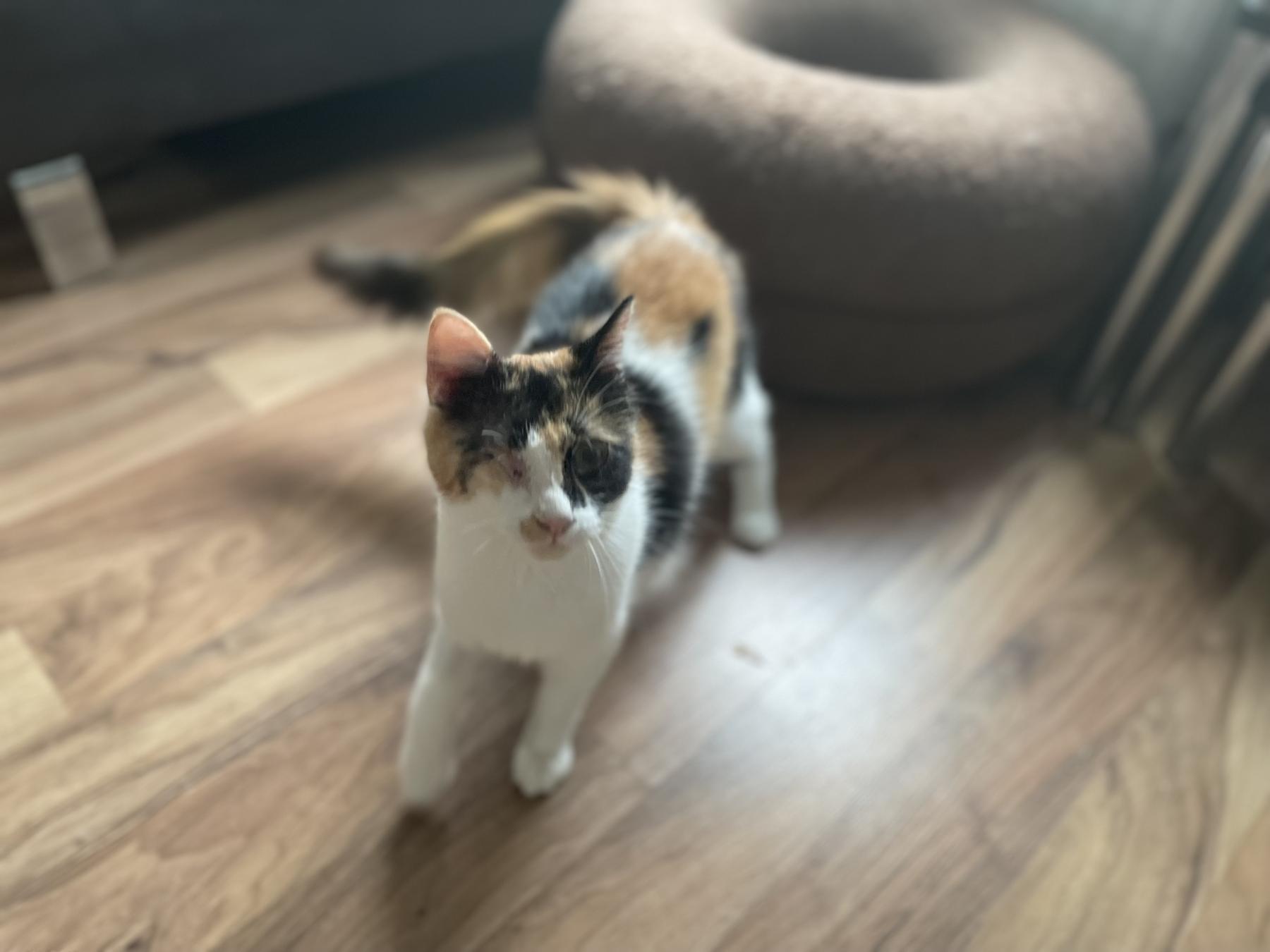 Melisa heeft een zeer sociaal karakter. Ze is gered van straat op Cyprus . Helaas was een oogje zo beschadigd dat het niet meer te redden was . Tijdens de sterilisatie is dit oogje netjes dichtgemaakt. Ze zit in de opvang in Amsterdam waar ze verblijft met meerdere katten en een klein hondje en dit gaat prima Mocht er een tuin of balkon zijn moet deze zo afgezet zijn dat ze er niet uit/af kan