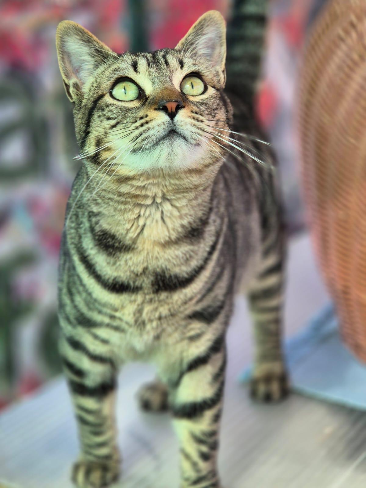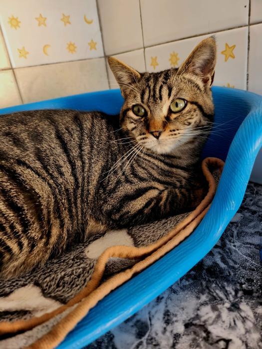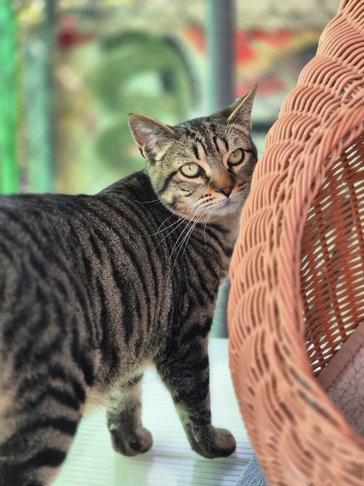Nekan is een hele lieve aanhankelijke kat. Hij is vriendelijk met mensen en andere katten. Nekan is gevonden in Lurca (Murcia), hij was in heel slechte staat en liep op straat. In dat gebied worden veel dieren in de steek gelaten. Hij werd opgenomen in de kliniek en genas. Nekan is jong, speels, en heel erg lief en aanhankelijk. Hij is dol op eten. Aandacht, knuffelen en eten zijn zijn favoriete bezigheden. Mensen, daar is hij dol op, je kunt hem oppakken en knuffelen. Hij logeerde in een gastgezin met andere kattten maar belandde in het asiel. Hij kon er niet langer blijven. In het asiel vond hij snel zijn draai met de andere katten. Hij had nooit problemen met ze. Nekan is een geweldige kat, hij is charmant naar iedereen die hem ontmoet.