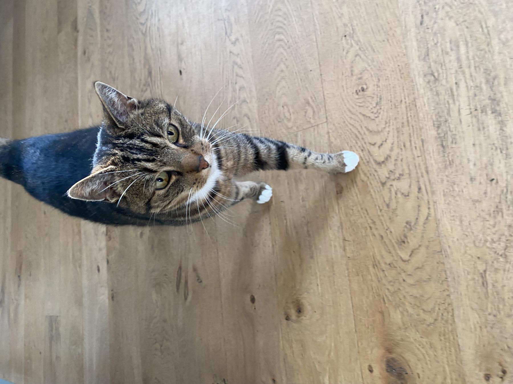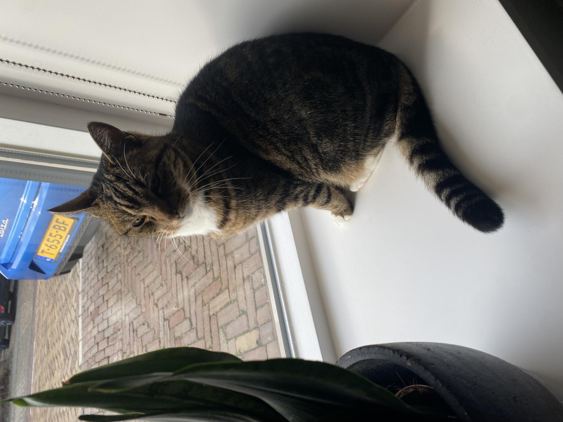 Lieve aanhankelijk poes. Is graag binnen maar wil ook graag naar buiten. Wil graag geknuffeld worden.
