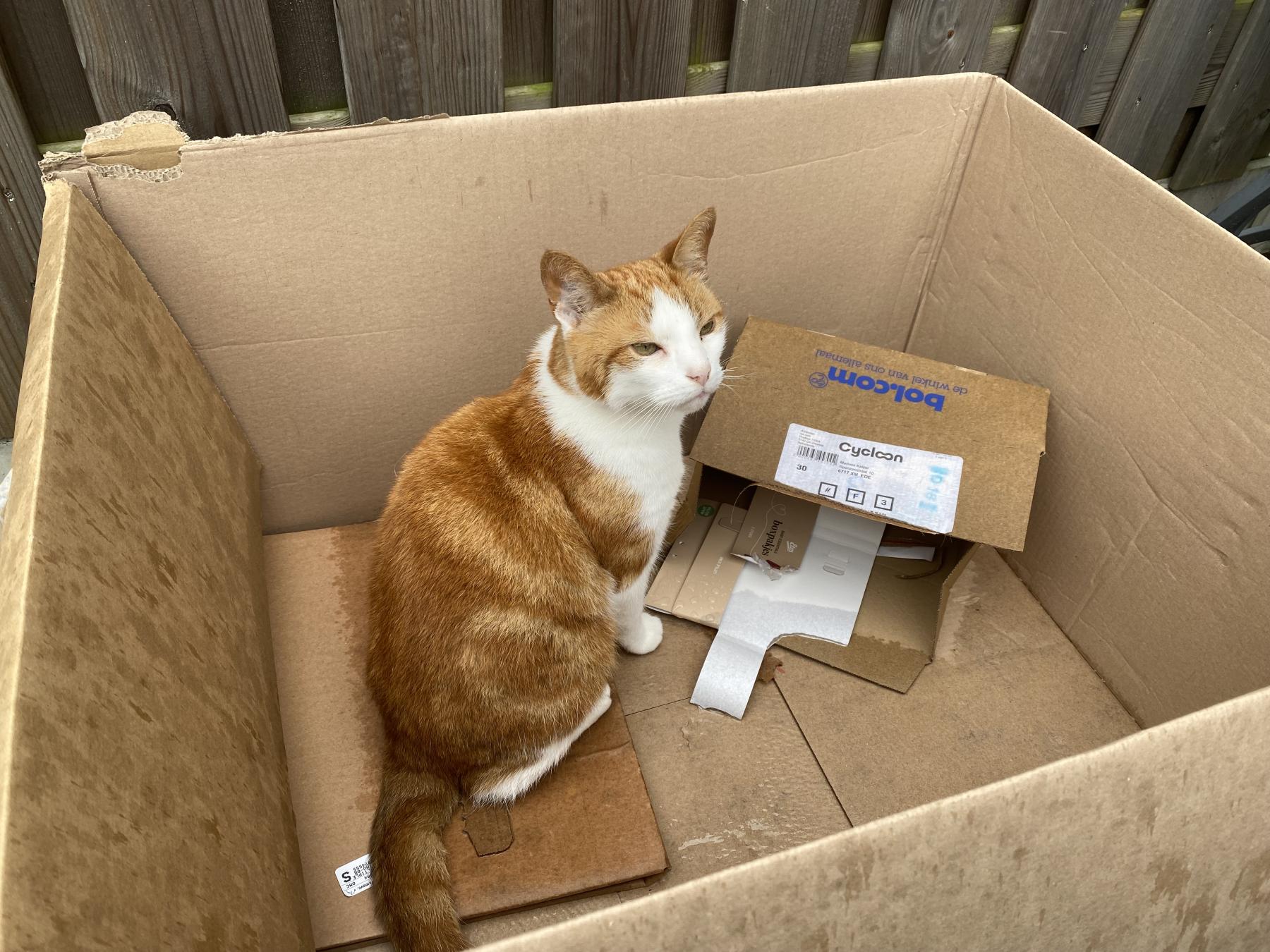 Rambo is een rood met witte kater van 11 jaar oud. Het is een slim diertje die het heerlijk vindt veel te slapen, maar ook lekker naar buiten wil. Hij komt bij zijn baasjes graag op schoot zitten en kroelen. Van vreemde mensen moet hij niet zoveel hebben. Jonge kinderen vindt hij ook niets, die vindt hij maar onvoorspelbaar. Hij houdt van rust en wil graag dat dingen gebeuren op zijn voorwaarden,