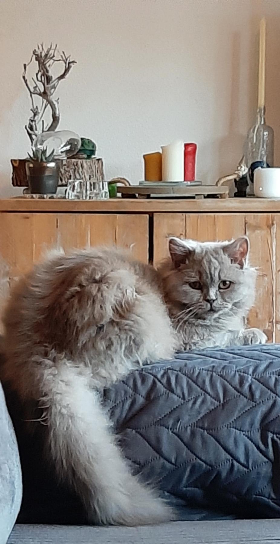 Het is een britse langhaar zonder stamboom, maar graag gewild.. zeker in mijn buurt.nEn omdat ik vaker en meer van huis ben, heeft ze na. Gezelschap nodignb. Verzorging en/of een plek waar ze wél naar buiten mag en kan (met een ren oid