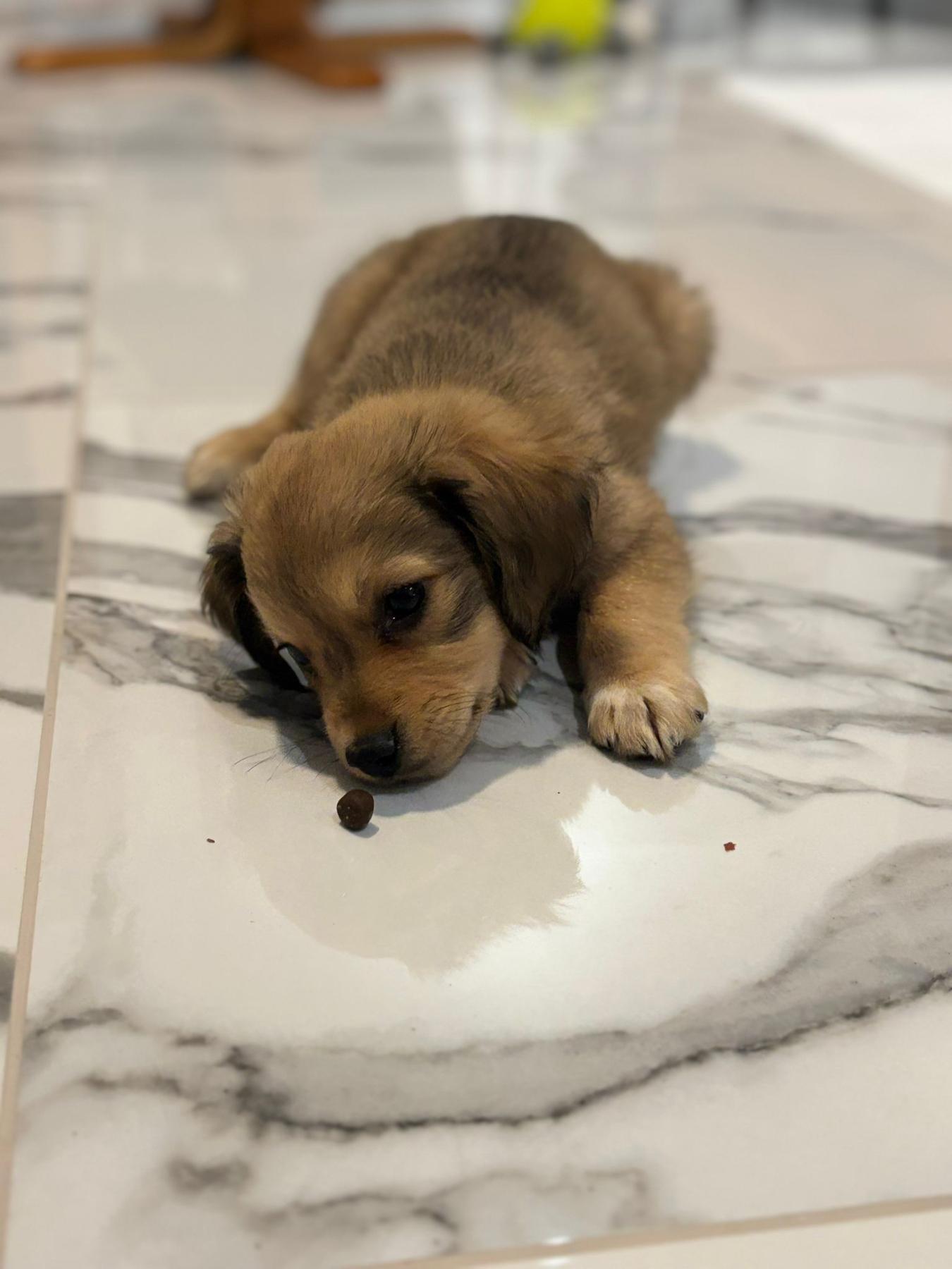 Almond is een vrolijke, speelse pup die dol is op aandacht. Hij geniet van spelen en ontdekken, maar is ook een echte knuffelaar. Zodra je hem oppakt, valt hij vaak meteen rustig in slaap — een klein teddybeertje in je armen.