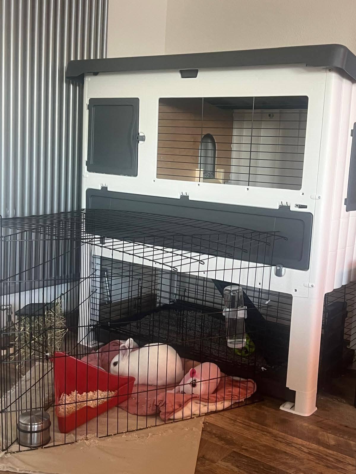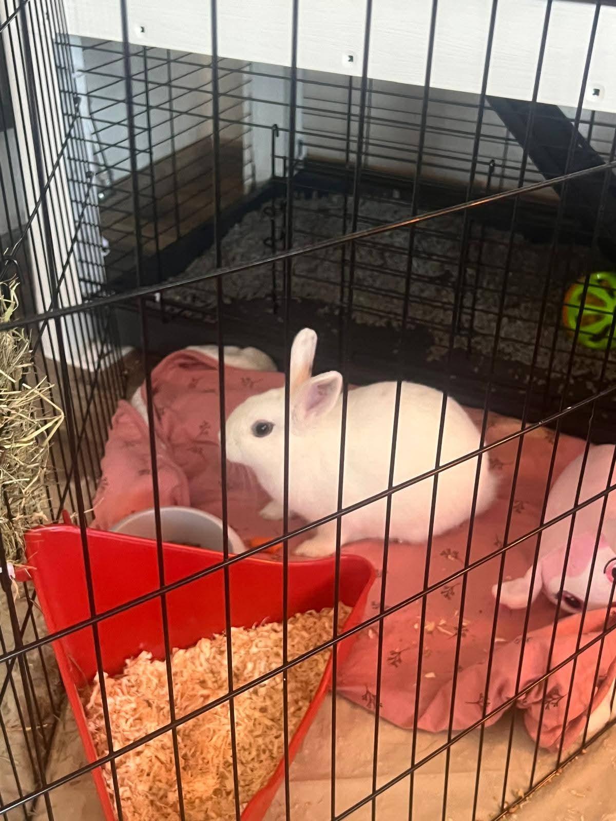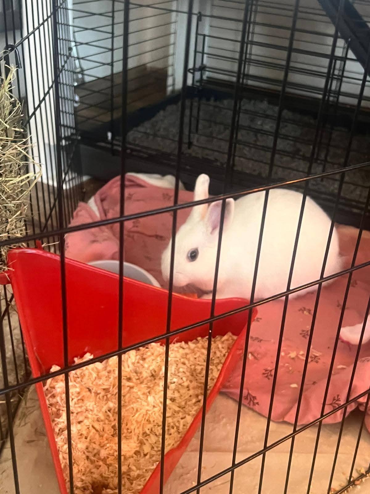 Helaas moet mijn oma haar lieve konijntje weg doen aangezien ze haar schouder gebroken heeft en jammer genoeg niet meer ervoor kan zorgen. Het is een vrouwtje en ze is 6 maandjes oud. Je krijgt er alle spulletjes inclusief gloednieuwe kooi bij. Ze h