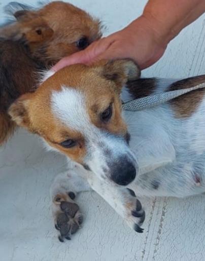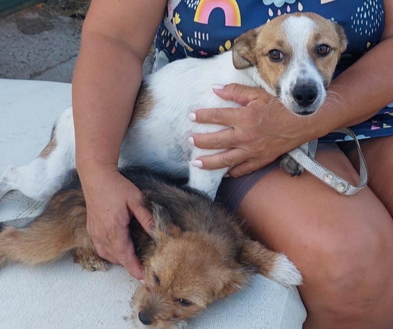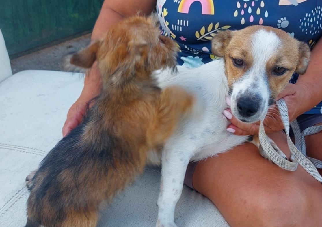 Haar verhaal: Drie honden - moeder en twee puppy's - werden op straat gezien terwijl ze rondzwierven. Moeder was lief en aardig. De mensen in de buurt hadden haar nog nooit eerder gezien. Een klein, lief hondje op straat is in permanent gevaar. Dus namen mensen alle drie de honden mee en begonnen ze asielen te bellen om ze op te nemen. Later kwamen er weer mensen naar het asiel en adopteerden het reutje. Moeder en dochter bleven achter in het asiel