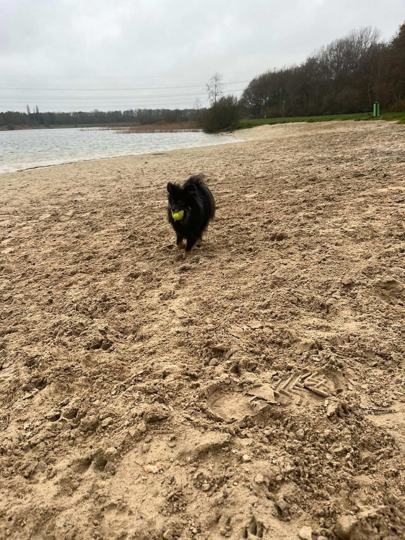 Ontzettend slim, energiek, vrolijk en lief hondje. Houdt van knuffelen. Hij is dol op kinderen en met de bal spelen. Hij kan alleen zijn. Blaft bij binnenkomst en weggaan. Hij kan los lopen en luistert goed.