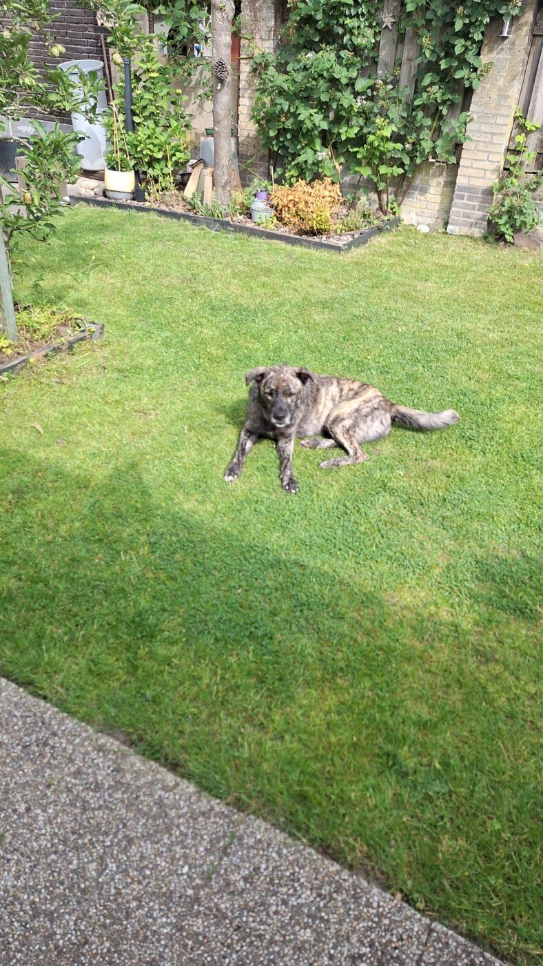 Banzai is een prachtige, nog jonge knul die zijn hart snel aan je verliest. Hij is namelijk een echte knuffelkont: hij ligt het liefst bij je en geniet volop van aandacht en aaitjes die hij krijgt. Buiten is hij helemaal in zijn element – samen wandelen door de natuur vindt hij heerlijk. Daarbij loopt hij netjes aan de riem en is hij sociaal naar andere honden. In katten toont hij buiten weinig interesse, vogels vindt hij daarentegen wel interessant.