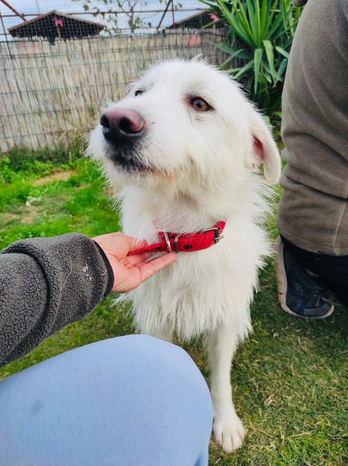 Beyaz is een mooie, leuke, lieve, actieve jonge hond. Hij is sociaal naar honden en mensen toe. Hij is een middelmaatje en weegt 18 kilo.