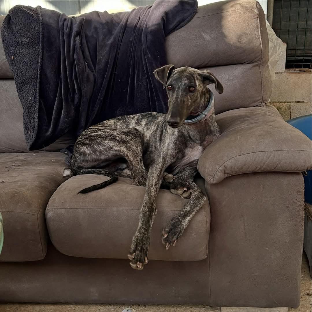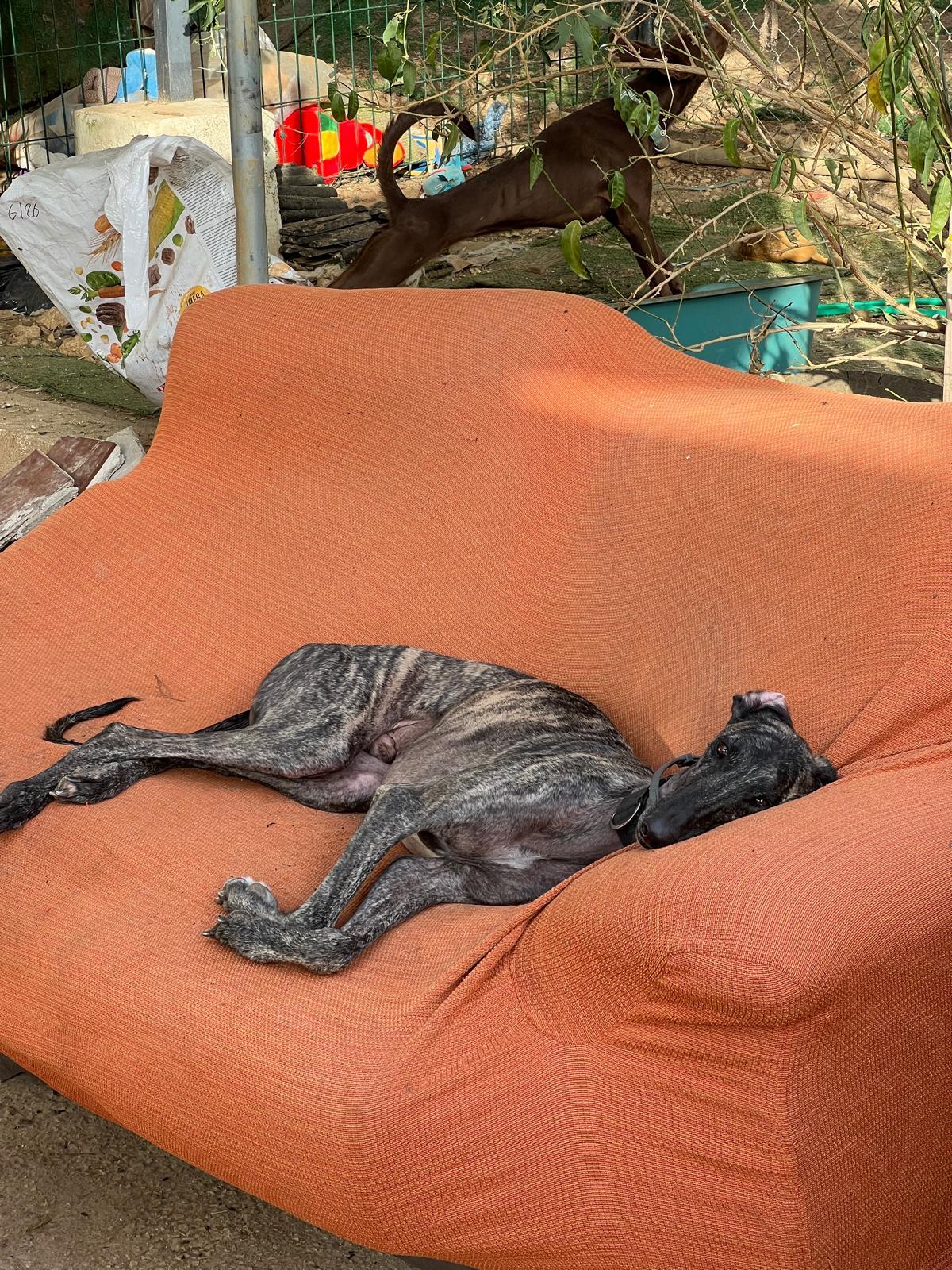 Bigote is echt een geweldige Galgo. Het is een blij ei van de ochtend tot de avond. Hij kan met alle honden overweg. Hij heeft geen voorkeur voor groot of klein, als ze maar willen spelen en rennen!