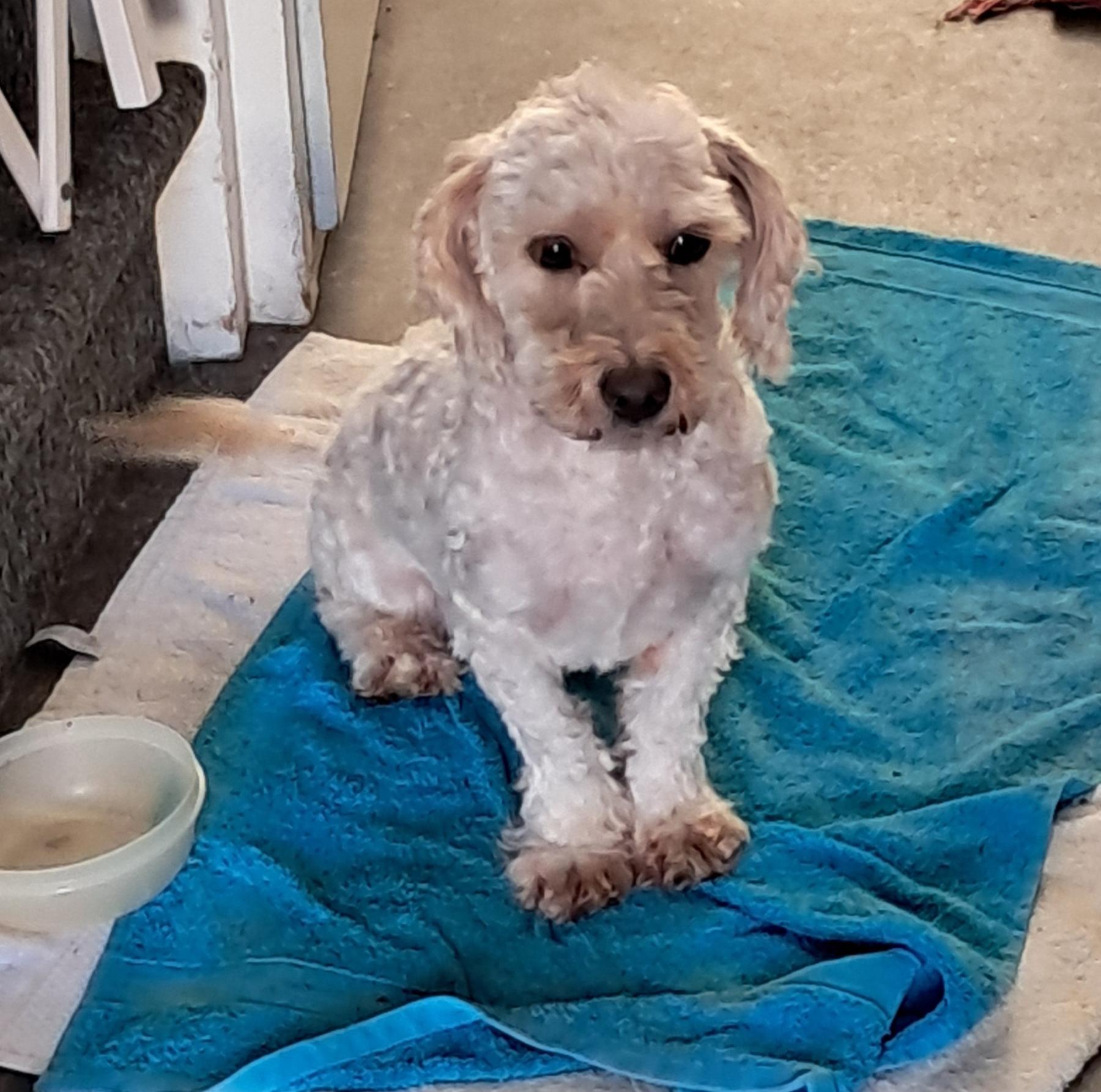Bobby's haren waren helemaal vervilt, hij is nu geschoren, daarom ook verschillende foto's.