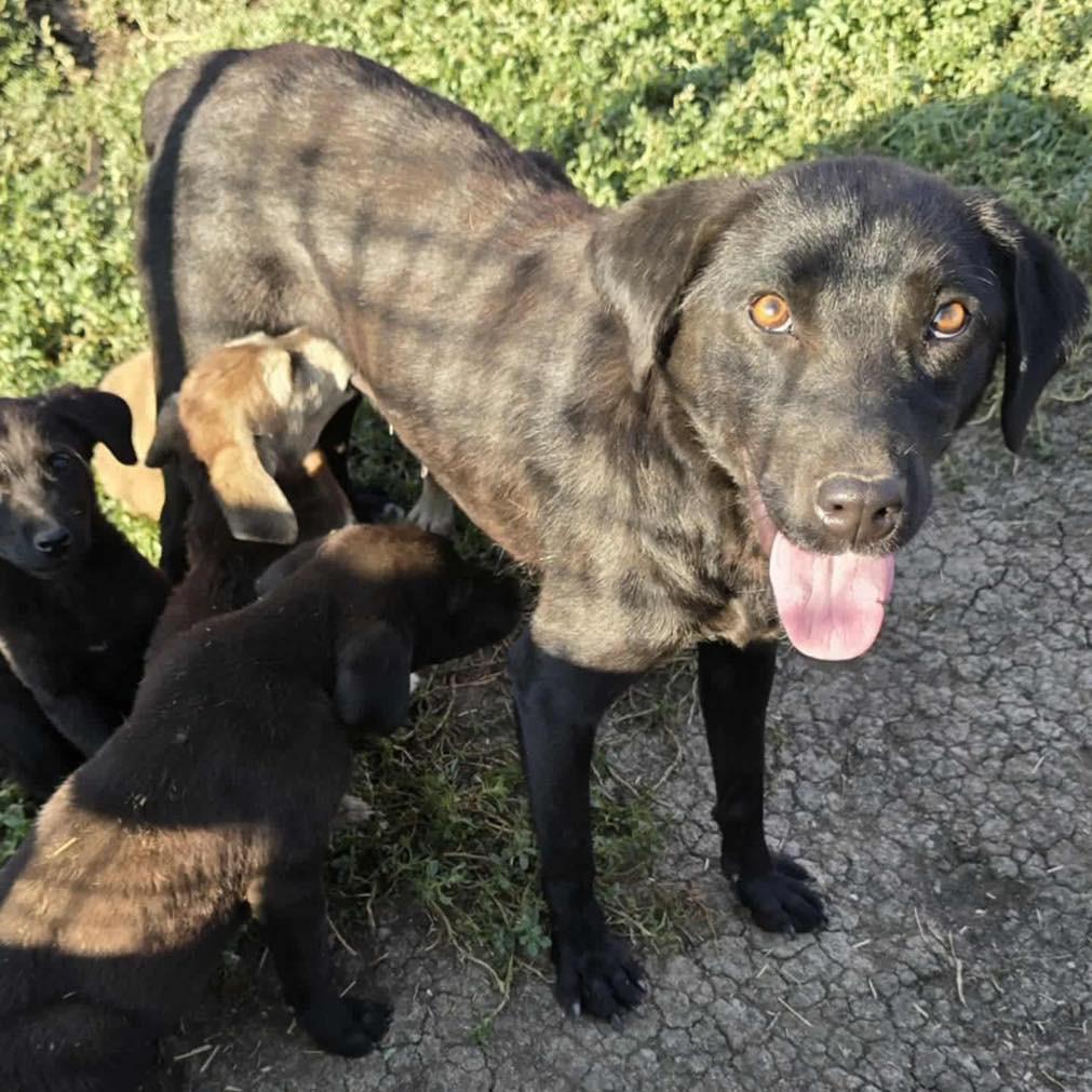 Lieve mama Bonnie werd samen met haar puppy’s gevonden langs de snelweg.